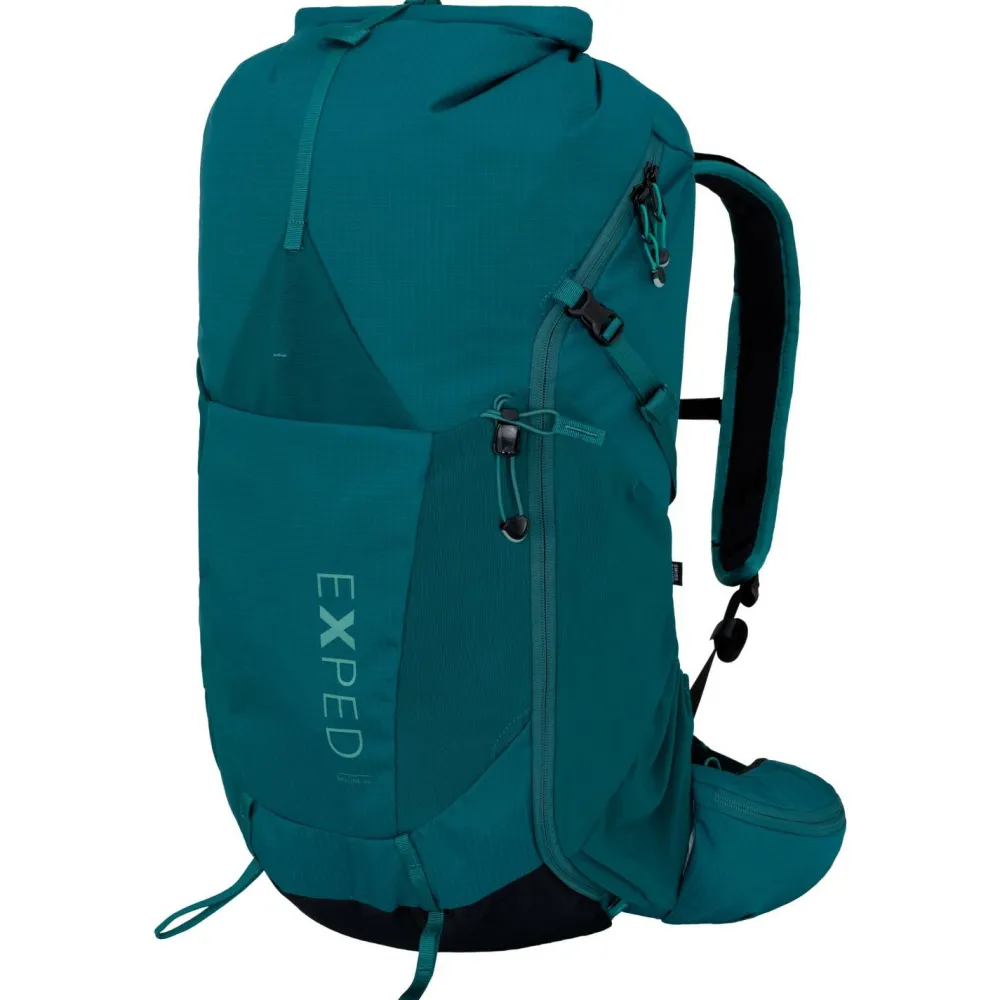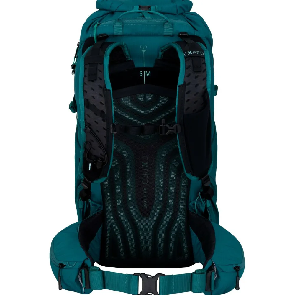 Der Skyline 45 von Exped ist ein vielseitiger Tourenrucksack für Fernwanderungen und mehrtägige Touren aller Art. Er besteht aus sehr robustem und recyceltem Kunstfasergewebe, das den Gepäckinhalt zusammen mit der integrierten Regenhülle auch bei Dauerregen trocken hält. Zusätzlich sorgt die Regenhülle mit ihrem reflektierenden Logo bei schlechtem Wetter und Dunkelheit für gute Sichtbarkeit. Mit seinem ergonomisch geformten, atmungsaktiven und höhenverstellbaren Air-Flow-Rückensystem bietet der Skyline Rucksack außerdem einen hohen Tragekomfort für den ganzen Tag.