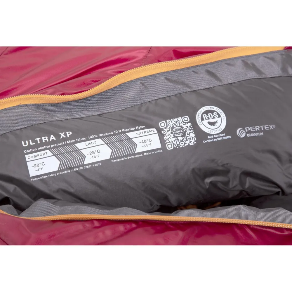 Ergänzt wird der Winterschlafsack in Mumienform durch einen verstellbaren Wärmekragen in elliptischer Form und eine komfortable 3D-Fussbox. Durch den breiten und proportionalen Differentialschnitt bietet der Schlafsack angenehme Bewegungsfreiheit. Dank doppelter Reißverschlussabdeckung ist der Ultra XP von Exped rundum vor Wärmeverlust und Kältebrücken geschützt.