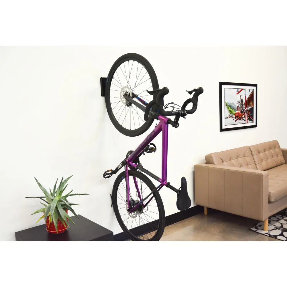 Der Fahrradhalter Velo Hinge 2.0 von Feedback Sports bietet mit seinem verstärkten, steiferen Körper und dem längeren Haken eine sichere Aufnahme moderner Bikes. Das schwenkbare Design erleichtert den Zugang zu benachbarten Rädern und sorgt für eine platzsparende Wandaufbewahrung. Bei Nichtgebrauch wird der Haken einfach ins Scharnier eingeklappt, sodass der Halter dezent und aufgeräumt an der Wand bleibt.