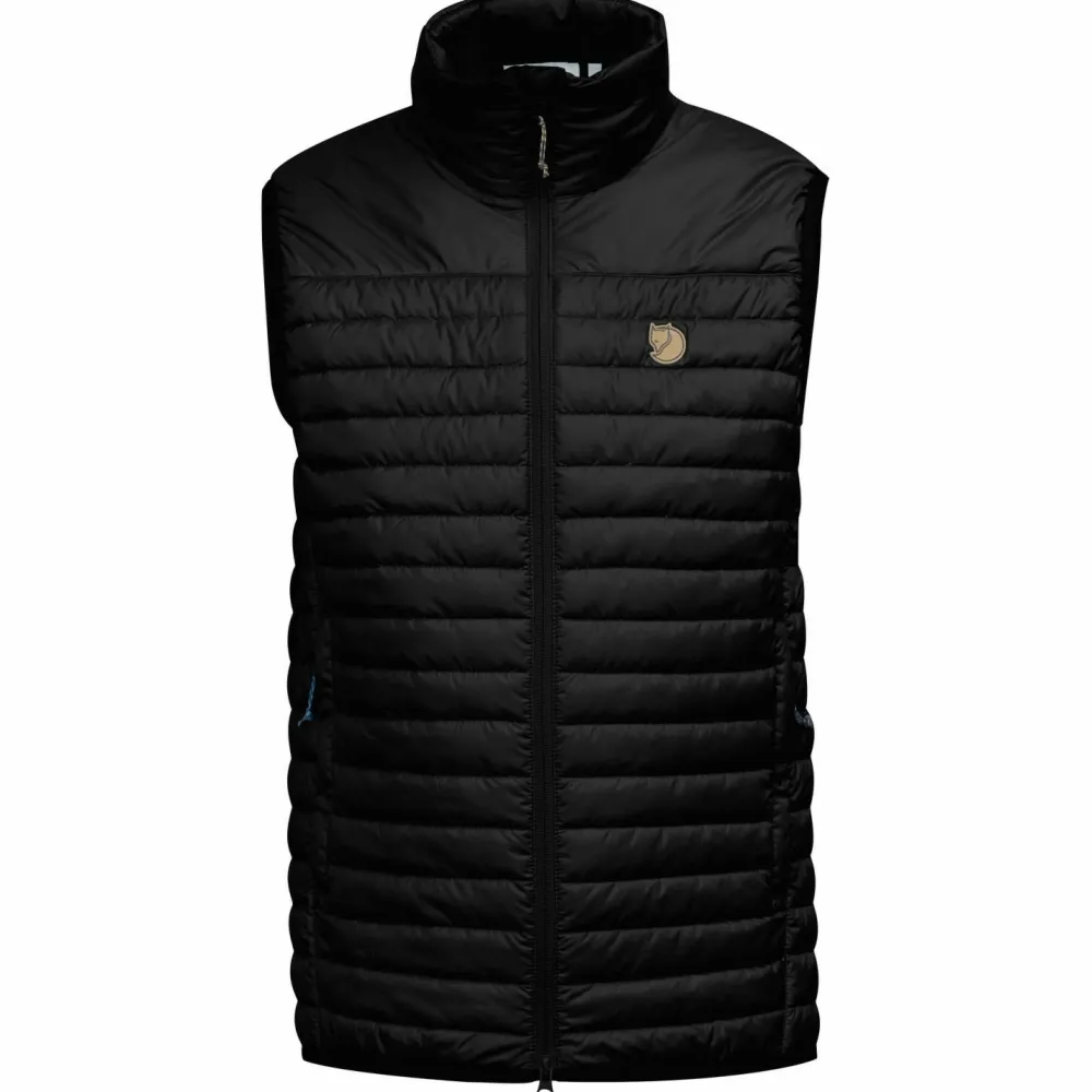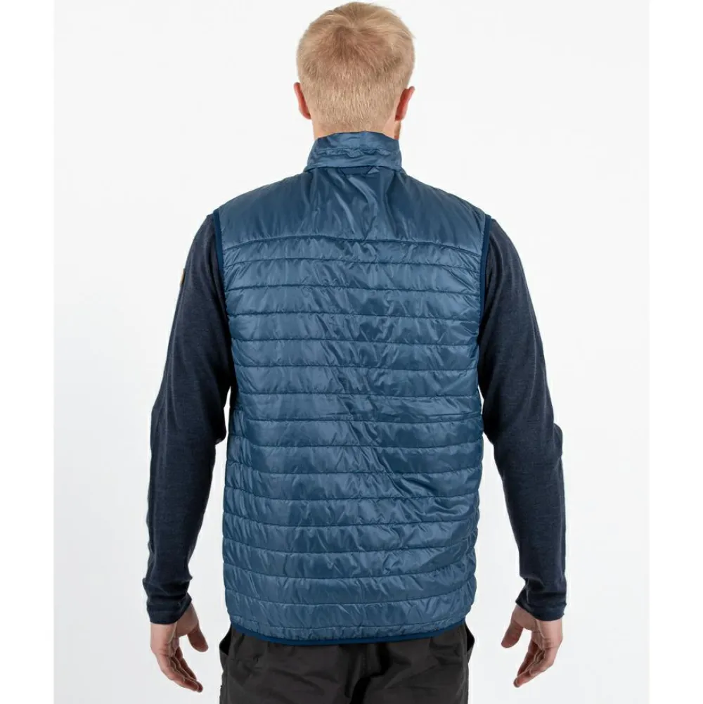 Die Abisko Padded Vest von Fjällräven ist das ideale Kleidungsstück, um in der Übergangszeit, den Rumpf gegen Wind und Kälte zu isolieren. Die Weste ist sehr leicht und kann bei Bedarf sehr klein und platzsparend im Rucksack oder einer Tasche verstaut werden. Sie ist mit einer Synthetikfüllung gefüttert, was zu einer guten Isolation gegen Kälte führt und gerade den empfindlichen Rumpfbereich vor dem Auskühlen schützt. Da das Füllmaterial auch gegenüber Nässe unempfindlich ist, kann man die Weste auch bei nass-kalten Bedingungen tragen.Elastische Züge an Armen und am Bund sorgen für einen guten Abschluss mit dem Körper und halten so die angewärmte Luft nah am Träger. Zwei Taschen bieten Platz für Ausrüstung oder halten, bei Bedarf, die Hände warm.Ein warmes Kleidungsstück, das viel wärmt und nicht ins Gewicht fällt – das ist die Abisko Padded Vest von Fjällräven.
