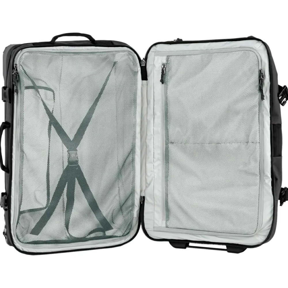 Der gepolsterte Deckel und die Spanngurte sorgen dafür, dass alles im Inneren sicher und geordnet verstaut ist. Für einen komfortablen Transport kannst Du die Tasche mit der Teleskopstange bequem ziehen oder mit einem der gepolsterten Griffe tragen. So kann der nächste Urlaub kommen- mit dem Färden Roller 75.