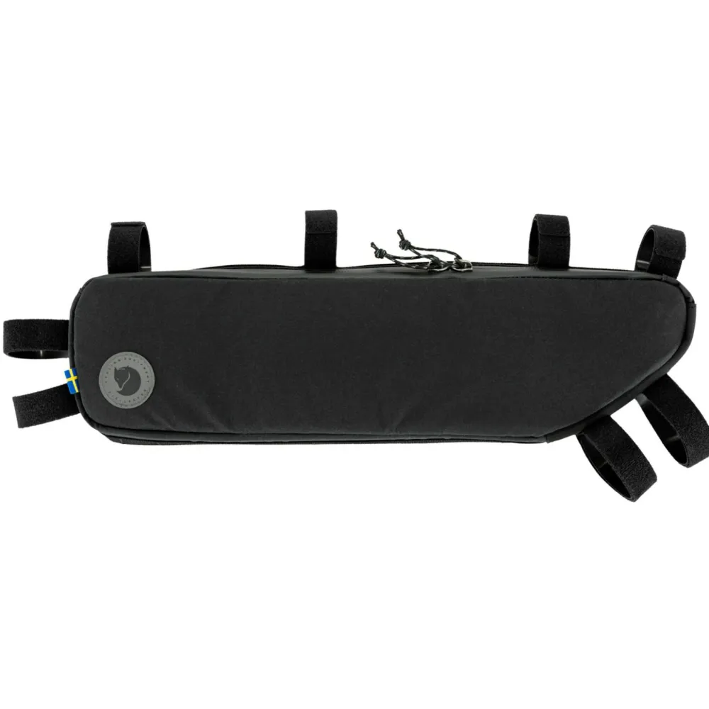 Cleverer Stauraum auf dem Bike- mit der Hoja Frame Bag von Fjällräven. Die Fahrradtasche in verschiedenen Größen kann mit Klettverschlüssen einfach und sicher am Rahmen Deines Fahrrads befestigt werden. Zugriff hast Du bequem über einen langen Reißverschluss.