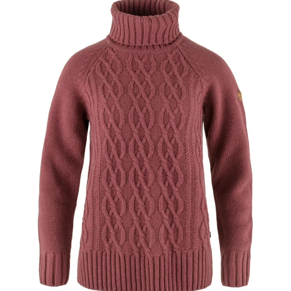Der Women’s Övik Cable Knit Roller Neck Wollpullover von Fjällräven sieht nicht nur gemütlich aus, sondern schmiegt sich mit seinen weichen Materialien angenehm an die Haut. Wenn es draußen stürmt und schneit, lädt der Pulli zum Kuscheln auf dem heimischen Sofa ein. Ein schöner, warmer Strickpullover mit einem klassischen Zopfmuster auf der Vorderseite. Hergestellt wurde der Pullover aus hochwertiger Wolle und eignet sich perfekt als Zwischenschicht bei kühlen Herbst- oder Winterausflügen, sowohl auf dem Land als auch in der Stadt.