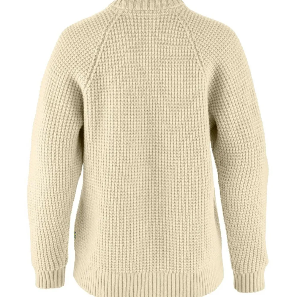 Der dicke Women’s Övik Waffle Knit Wollpullover von Fjällräven kann Dich auch an den kältesten Wintertagen wärmen. Du kannst ihn im Haus und im Büro tragen, er eignet sich aber auch als wärmende Außenschicht in den Übergangsjahreszeit. Er kann Dich beispielsweise auch bei der Gartenarbeit, beim Fischen oder beim Spaziergang mit dem Hund begleiten. Das Material aus Wolle ist von Natur aus leicht wasserabweisend und kann einem kurzen Regenschauer oder feuchtem Morgennebel gut standhalten. Außerdem ist Wolle dafür bekannt, auch in feuchtem Zustand eine gute Wärmeleistung zu haben.