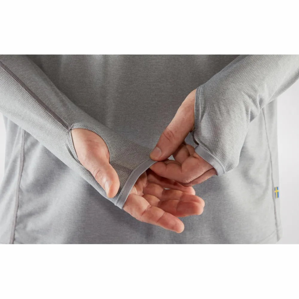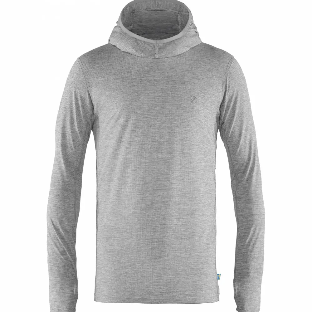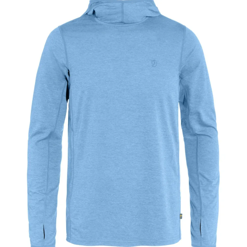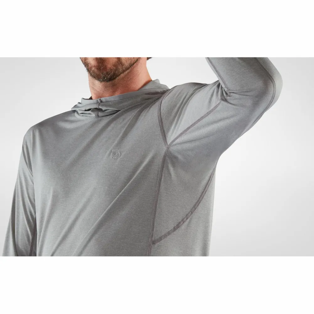 Wenn unterwegs die Sonne brennt: der Abisko Sun-Hoodie von Fjällräven ist ein sportlich-legerer Hoodie für anspruchsvolle Outdoorfans, der sowohl auf optischer, als auch auf funktioneller Ebene zu punkten weiß.Der Hoodie ist aus einem leichten Gewebe aus recycelter Kunstfaser gefertigt, das den Schweiß direkt vom Körper nach außen transportiert, schnell trocknet und sich nebenbei noch prima anfühlt. Der Schnitt fällt für optimale Luftzirkulation etwas lockerer aus und Zwickeleinsätze unter den Achseln sorgen für extra Bewegungsspielraum. Die Nahtstellen sind scheuerfrei gelegen und verarbeitet und die Ärmel kommen mit praktischen Daumenschlaufen, die wenn gewünscht ungewolltes Hochrutschen verhindern. Bei brutzelnder Mittagssonne kommt die Kapuze mit verstärktem Schirm zum Einsatz. Top!