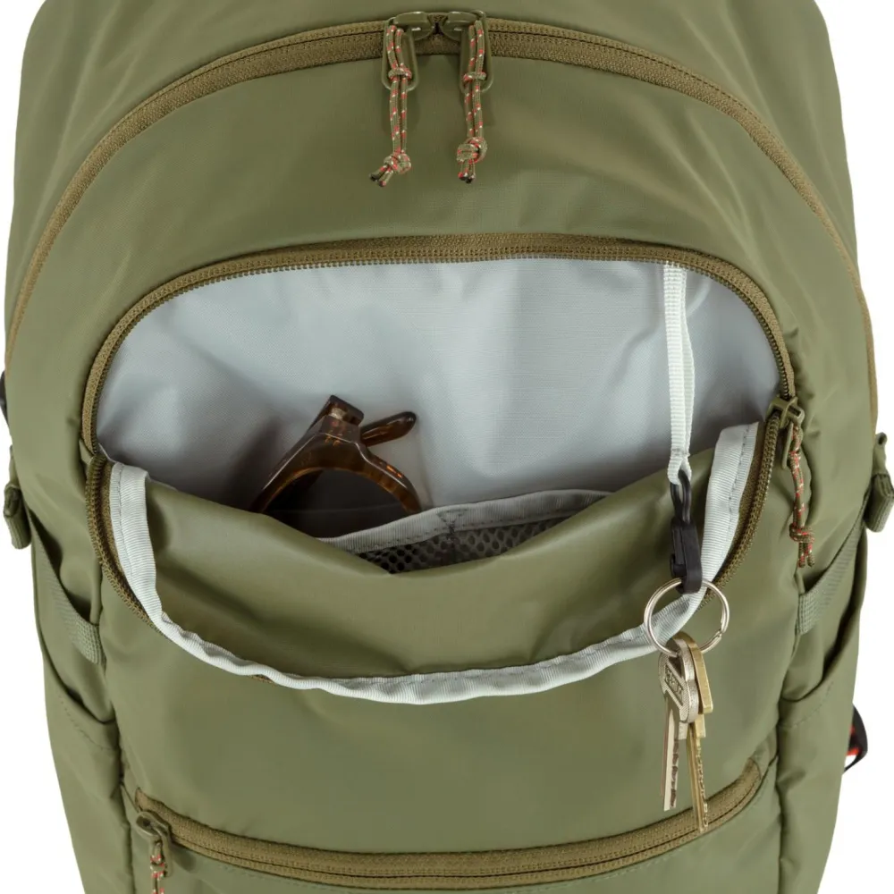 Der High Coast Backpack 24 Daypack von Fjällräven ist ein echtes Multitalent – ob für Uni, Schule, Tagesausflüge in die Stadt oder kurze Wanderungen. Sein großes Hauptfach bietet reichlich Stauraum und verfügt über ein separat gepolstertes Laptopfach – ideal zum sicheren Transport technischer Geräte.Zwei Reißverschluss-Fronttaschen sorgen für Ordnung und schnellen Zugriff auf Schlüssel, Wertsachen oder andere Kleinigkeiten, die Du unterwegs griffbereit brauchst.