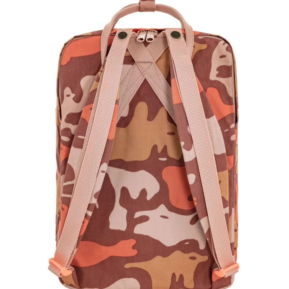 Was den Kånken Graphics Laptop 15 Daypack von Fjällräven von einem gewöhnlichen Kånken Rucksack unterscheidet ist zum einen sein einzigartiges Design mit buntem Camo-Look. Zum anderen verfügt diese spezielle Version über ein gepolstertes Notebookfach für bis zu 15“ große Laptops und Tablets. Ansonsten ist der Rucksack durch und durch ein echter Kånken: schmale Schultergurte, seitliche Taschen, ein Frontfach mit Reißverschluss und robuste Tragegriffe. Natürlich aus strapazierfähigem G-1000 HeavyDuty S und natürlich mit einem klassischen Logo-Patch auf der Vorderseite.