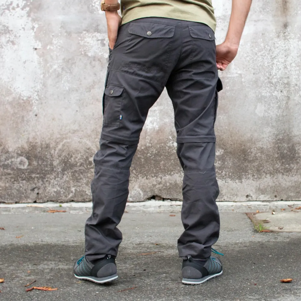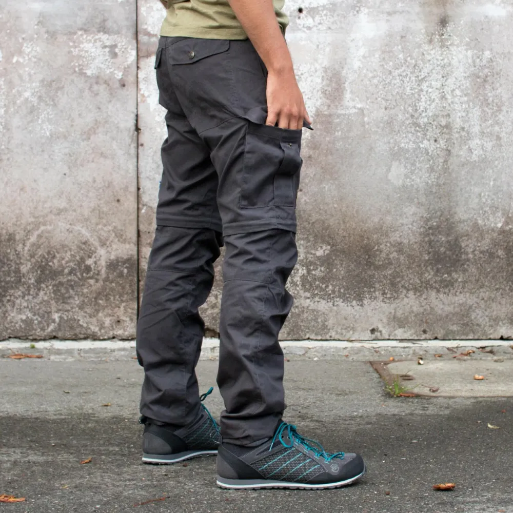 Langlebige Trekkinghose welche ein super Begleiter ist, egal auf welchem Weg – die Karl Pro Zip-Off Trousers von Fjällräven. Wie der Name schon verrät ist sie eine Zip-Off Hose und lässt sich dadurch schnell zur kurzen Hose umwandeln. Muss ein Fluss durchquert werden oder ist es schlicht zu warm, schnell die Beine abnehmen und das Abenteuer weiter genießen. Die normale Passform ist nicht zu eng und nicht zu weit, dadurch hat die Hose ein angenehmes Tragegefühl. Die Trekkinghose besteht aus dem von Fjällräven entwickelten Material G-1000 Silent. Das Mischgewebe aus Polyester und Baumwolle ist extrem robust, weich und atmungsaktiv. Die vorgeformten Knie und ein bewegungsfreundlicher Schnitt ermöglichen volle Flexibilität und schränken nicht ein. Viele verschiedene Taschen bieten genug Stauraum um die wichtigsten Dinge direkt dabei zu haben. Mit der Karl Pro Zip-Off Trousers kann jeder Weg und jedes Abenteuer gemeistert werden.