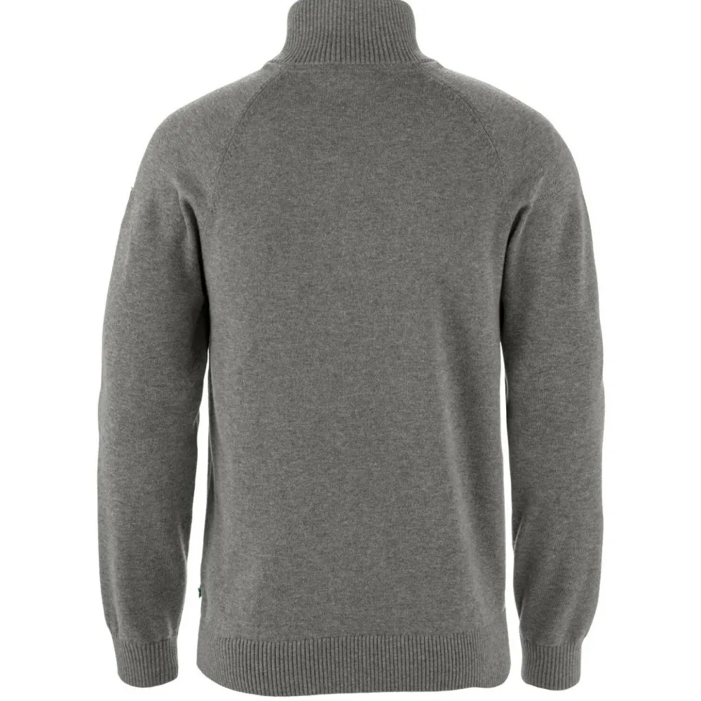 Der Övik Lite Half Zip Wollpullover von Fjällräven kann Dich schön warm halten – egal, ob Du ihn an den kältesten Wintertagen im Büro trägst, oder er Dich in den Übergangsjahreszeiten als Außenschicht begleitet. Der Stehkragen, die Ärmelbündchen und der Saum sind gerippt gestrickt worden und liegen schön eng an. So kann dort keine wertvolle Körperwärme entweichen. Ist Dir bei dem Spaziergang mit Deinem Hund doch ein wenig warm geworden, kannst Du den halblangen Frontreißverschluss vorne einfach öffnen.