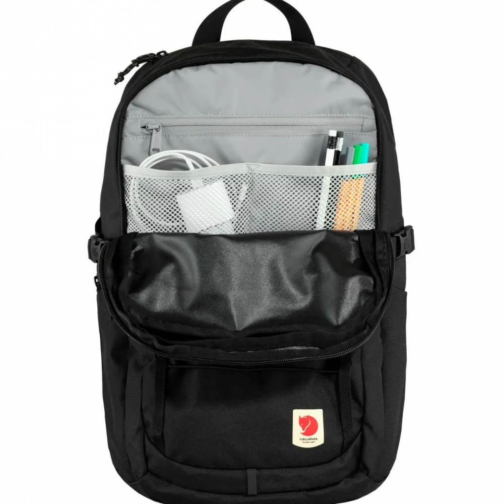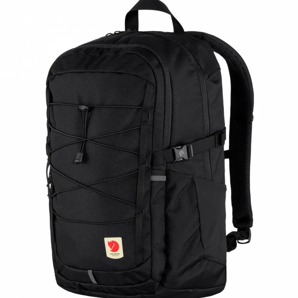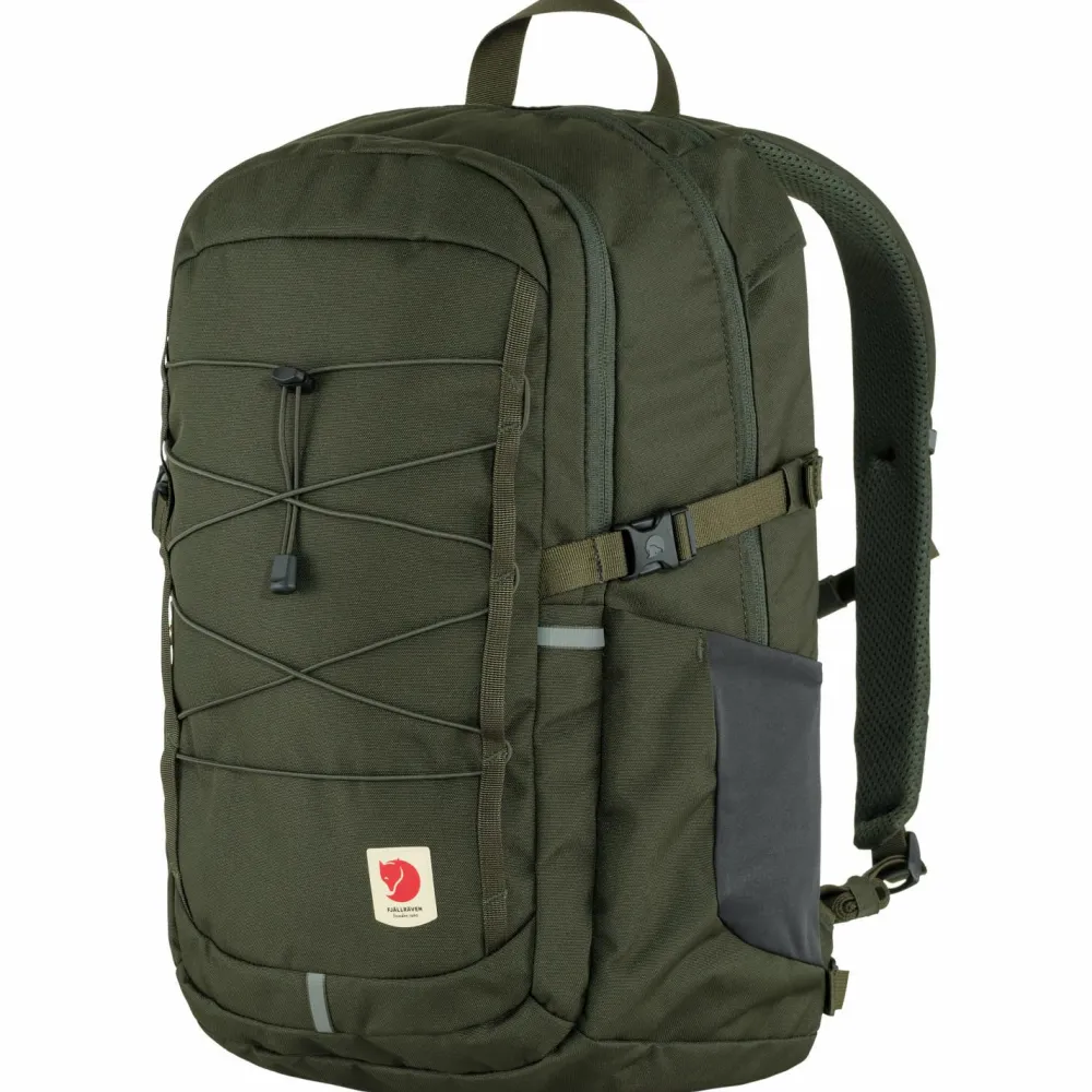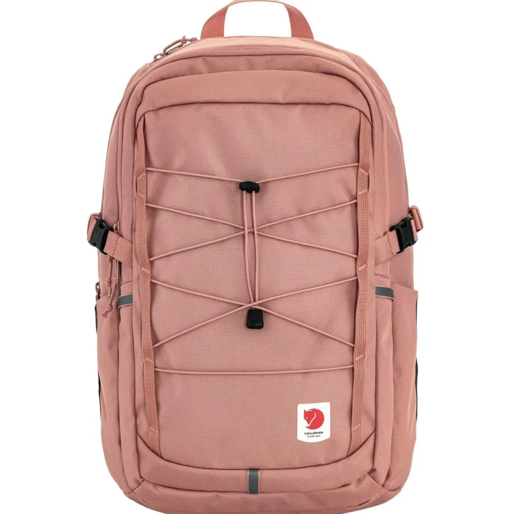 Der Skule 28 Daypack von Fjällräven sieht nicht nur richtig cool aus, sondern überzeugt auch mit inneren Werten. Hier sind vor allem die vielen Fächer und Abteile des Rucksacks zu vermerken, die unterwegs eine tolle Möglichkeit bieten, Kleinigkeiten organisiert zu transportieren. Im vorderen Außenbereich ist der Rucksack mit elastischen Straps versehen, die das schnelle befestigen einer Regenjacke öder ähnlichen Gegenständen möglich machen. Seitlich können Flaschen transportiert werden und sind hier jederzeit griffbereit.