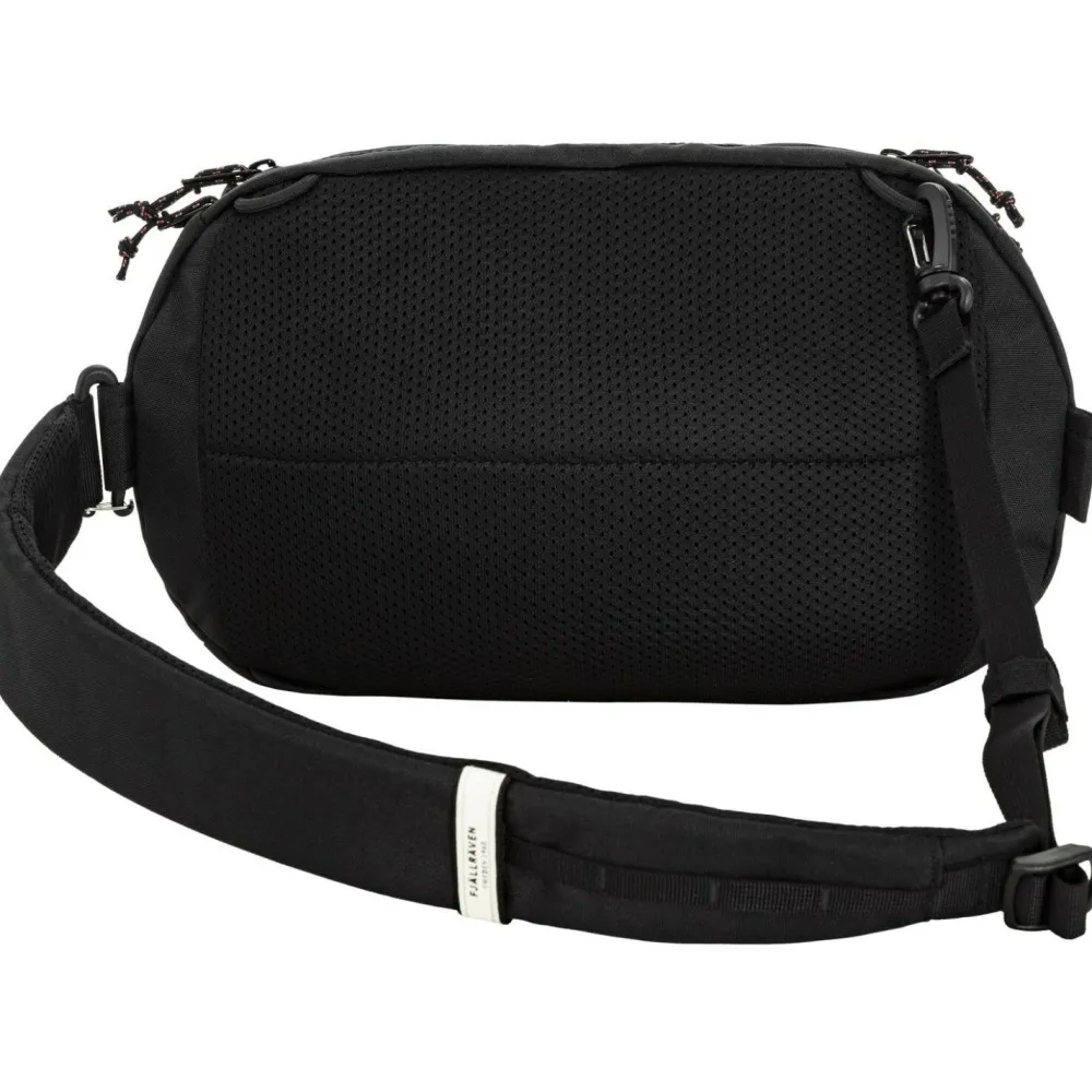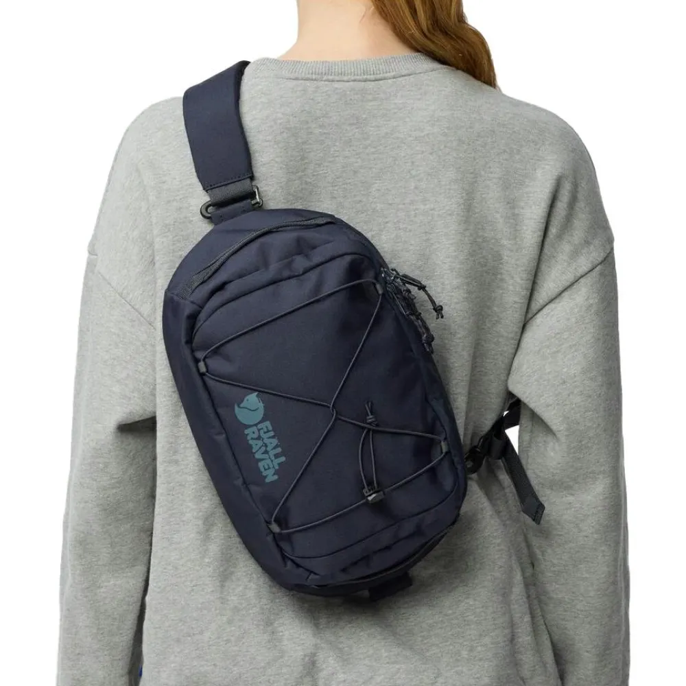 Als funktionelle Umhängetasche trägt sich die Skule Sling 6 von Fjällräven bequem am Rücken oder seitlich. Die Tasche besteht aus besonders robustem Oxford 600D Polyester und wird vollständig aus recycelten Rohstoffen gefertigt.