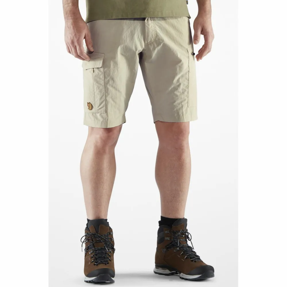 Lässig, locker, leicht unterwegs bei heißen Temperaturen: die Travellers MT Shorts von Fjällräven hält hitzegeplagte Beine luftig und kühl und sieht dabei auch noch echt gut aus!Als Obermaterial kommt die Shorts mit dem aus einem Mix aus biologisch angebauter Baumwolle und recyceltem Polyamid gefertigten MT Eco daher. Das ist hoch atmungsaktiv, wirkt bei warmen Außentemperaturen kühlend, trocknet schnell und fühlt sich prima auf der Haut an. Der Hüftbund ist an seiner Innenseite mit einem Netz-Gewebe gefüttert und für einen rutschfreien Sitz an den Seiten mit elastischen Einsätzen versehen. Die jeweils beiden Front- und Gesäßtaschen stecken Smartphone und Geldbeutel ein, während die beiden extragroßen Beintaschen sogar Platz für Karte oder Reiseführer bereithalten.