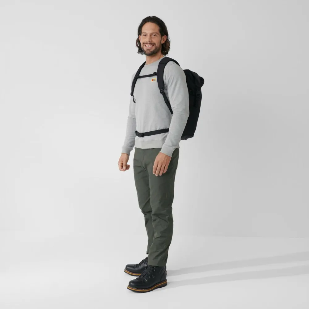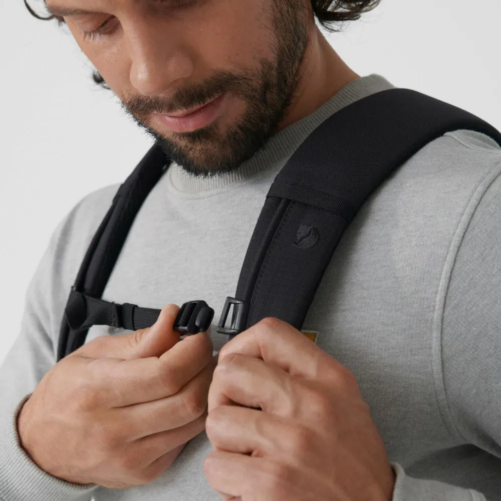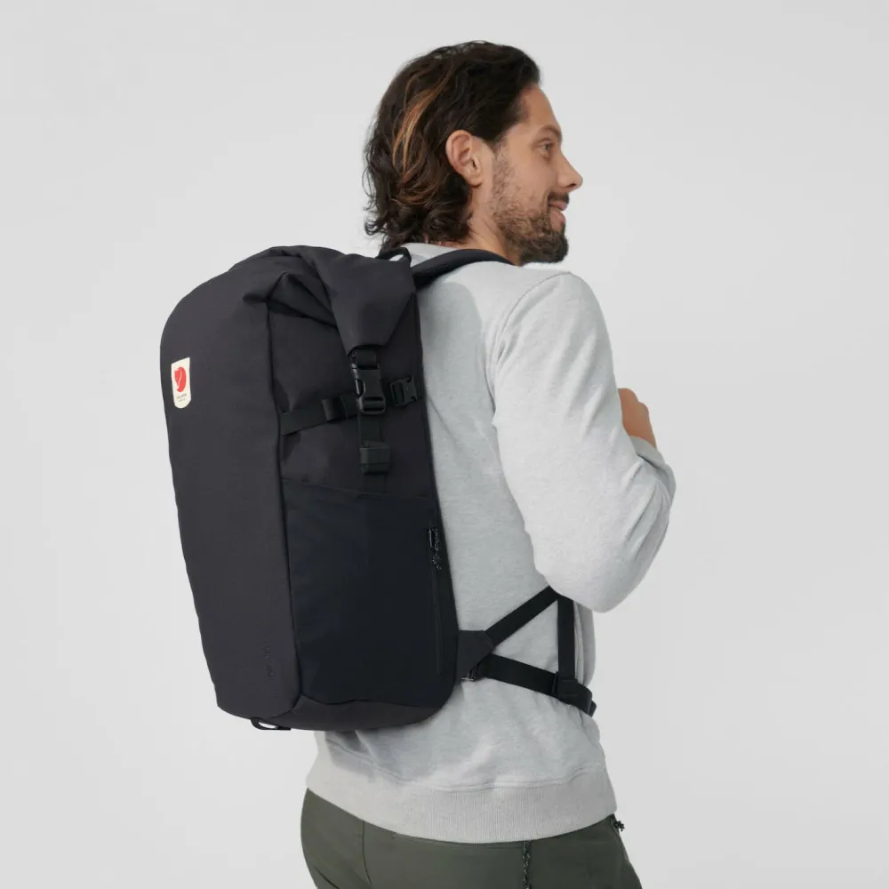 Der Ulvö Rolltop 30 Rucksack von Fjällräven kommt mit wasserdichten Materialien und einem coolen Äußeren daher und passt perfekt in einen stylischen Freizeit-Look. Damit der Rucksack auch bei einem langen Weg zur Uni oder ins Geschäft angenehm sitzt, sind die Schulterträger gepolstert. Auch schweißtreibende Bedingungen sind hier kein Problem, denn die Schulterträger sind atmungsaktiv und mit hochwertigen Mesh-Materialien ausgestattet. Der Rolltop-Verschluss ermöglicht einen einfachen Transport von Gegenständen und der Rucksack kann bis zum Maximum beladen werden, wenn beim Einkaufen mal wieder mehr als erwartet auf dem Kassenband lag. Seitliche Taschen beherbergen Kleinigkeiten sicher, sodass sie jederzeit griffbereit sind.