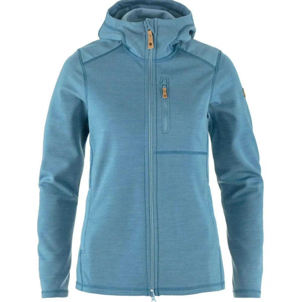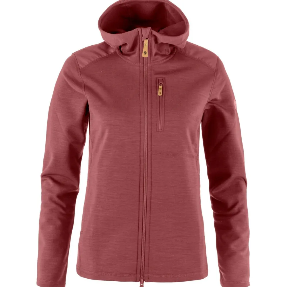 Der Women’s Keb Fleece Hoodie von Fjällräven ist eine strapazierfähige und bequeme Fleecejacke für Damen, die sich ideal als Midlayer beim Trekking oder Wandern eignet. Sie hält an kalten Tagen angenehm warm und bietet durch den Stretch-Anteil viel Bewegungsfreiheit. Die angeraute Innenseite fühlt sich wunderbar weich an und sorgt für einen hohen Tragekomfort. Über dem glatten Obermaterial kannst Du problemlos eine Shelljacke tragen.