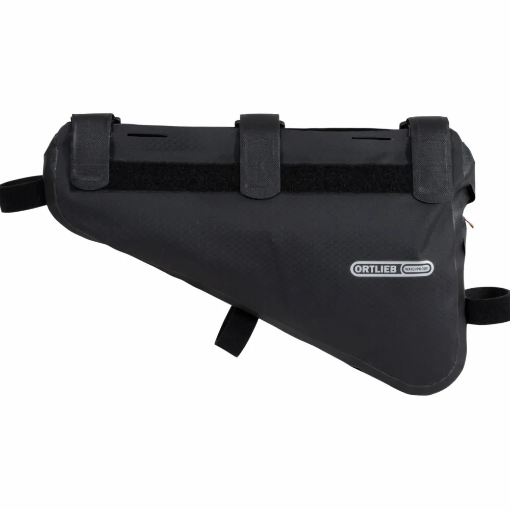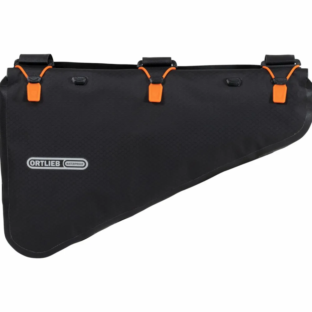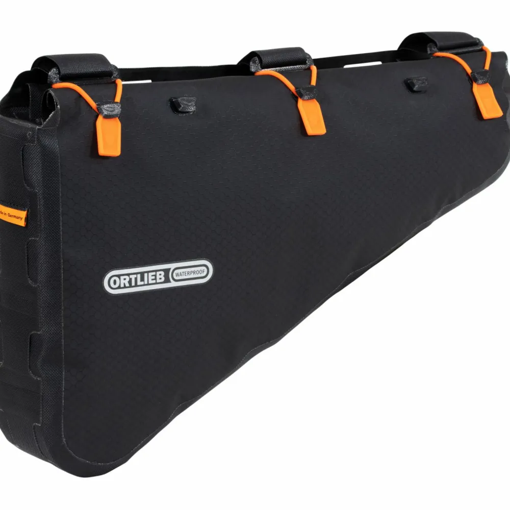 Für Radtouren und Fahrradreisen lässt sich die Frame-Pack Rolltop 4 Fahrradtasche von Ortlieb mit bis zu 3 kg zusätzlicher Ausrüstung beladen. Dafür stehen 4 Liter Stauraum zur Verfügung, die vor Nässe und Regen bestmöglich geschützt sind. Ortlieb ergänzt das PU-beschichtete Nylongewebe mit einem schlanken Rollverschluss, der auch vor Schmutz und Staub optimal schützt. Mit individuell einstellbaren Klettverschluss-Riemen wird die Frame-Pack Rolltop 4 Fahrradtasche am Rahmen befestigt. Das strapazierfähige Material eignet sich dabei auch hervorragend für die Verwendung an Carbon-Rahmen.