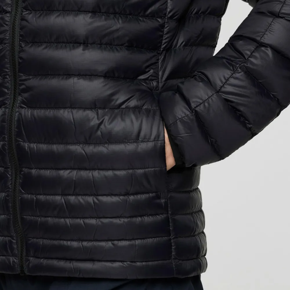 Der verstellbare Taillenbund mit Kordelzug bietet Funktionalität in der Tragweise. Mit den beiden Eingrifftaschen mit Reißverschluss wurde ausreichend Platz geschaffen, um wichtige Kleinigkeiten wie Geldbeutel, Schlüssel oder Handy schnell und sicher zu verstauen. Die leichte und isolierte Jacke ist mit aus verantwortungsvoll gewonnenen und wasserabweisenden 800er-Daunen gefüllt. Damit bietet sie beste Voraussetzungen für einen abenteuerreichen Tag in den Bergen.