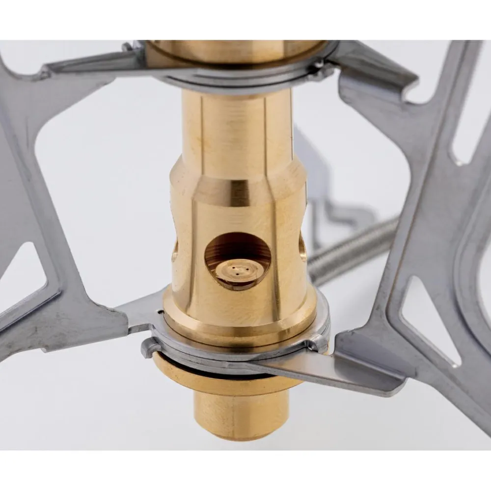 Der Fusion Trek ist ein kompakter und leichter Gaskocher vom japanischen Kocherspezialist Soto. Er ist minimalistisch und bringt zugleich starke Leistung mit. Der Brennerkopf besitzt eine konkave Oberfläche und schützt die Flamme damit vor seitlich einfallendem Wind. Der Brennerkopf ist so konstruiert, dass über 300 Teilflammen erzeugt werden. Des Weiteren sorgt der Micro Regulator für eine gleichmäßige Flamme auch wenn die Umgebungstemperatur etwas kälter ist und die Gaskartusche sich dadurch abkühlen kann. Das macht den Kocher besonders effizient. Die Topfstützen lassen sich einfach ausklappen und rasten sicher ein. Zudem dienen die Stützen gleichzeitig als drei Standbeine, um die Stabilität auch auf unwegsamem Gelände zu verbessern. Damit wird effizientes Kochen in den Bergen möglich!