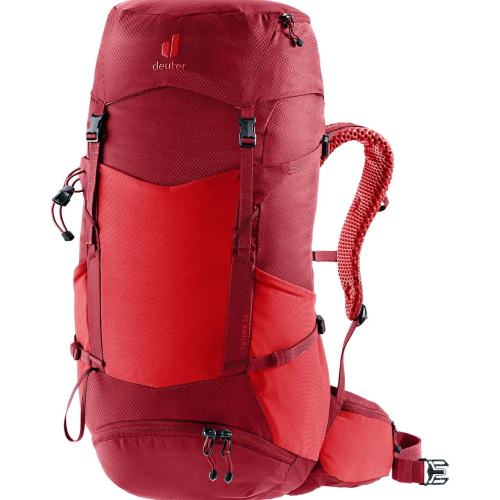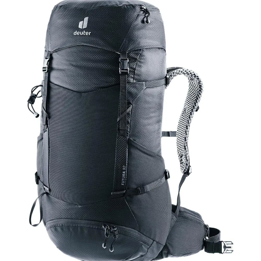 Der Futura 32 Wanderrucksack von Deuter ist ein echter Allrounder. Er liebt den Einsatz in den Bergen, freut sich aber mindestens genauso auf einen Stadtbummel im Urlaub. Das geräumige Innenleben ist mit einer Vielzahl an Fächern und Taschen ausgestattet. So finden Geldbeutel, Schlüssel und Co immer einen sicheren Aufbewahrungsort. Aber auch für größere Gegenstände ist vorgesorgt. Im Nasswäschefach kannst Du gebrauchte Kleidung unterbringen, ohne dass diese die anderen Utensilien im Rucksack berührt. Flaschenhalterungen und die Kompatibilität mit einer Trinkblase macht eine schnelle und unkomplizierte Hydration jederzeit möglich.