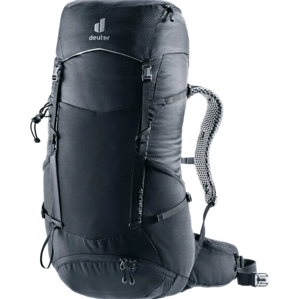 Der Futura EL 34 Wanderrucksack von Deuter ist ein echter Allrounder. Er liebt den Einsatz in den Bergen, freut sich aber mindestens genauso auf einen Stadtbummel im Urlaub. Das geräumige Innenleben ist mit einer Vielzahl an Fächern und Taschen ausgestattet. So finden Geldbeutel, Schlüssel und Co immer einen sicheren Aufbewahrungsort. Aber auch für größere Gegenstände ist vorgesorgt. Im Nasswäschefach kannst Du gebrauchte Kleidung unterbringen, ohne dass diese die anderen Utensilien im Rucksack berührt.
