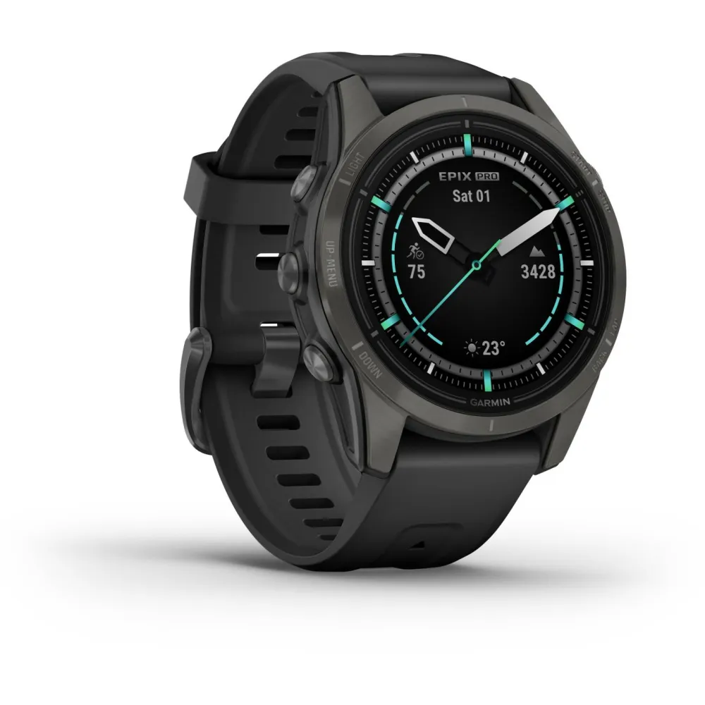 Neben vielen Smartwatch-Funktionen wie Smart Notifications, Musikwiedergabe und kontaktlosem Bezahlen mit Garmin Pay stehen Dir mehr als 80 verschiedene Sport- und Outdoor-Apps sowie eine ganze Reihe an Gesundheitsfunktionen zur Verfügung. Die unkomplizierte Zwei-Wege-Bedienung mit Touchscreen und regulären Tasten ermöglicht Dir einen schnellen Zugriff auf die gewünschten Funktionen. Sei es im Gym, bei Outdoorabenteuern oder auf Reisen – mit der EPIX Pro (GEN 2) Sapphire bekommst Du einen zuverlässigen und robusten Begleiter, der Dich bei Deinen alltäglichen und sportlichen Herausforderungen zuverlässig unterstützt!