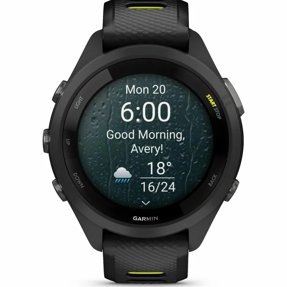 Wenn Du das Lauftraining abwechslungsreicher gestalten willst, die Trainingseffekte detailliert messen und analysieren möchtest und zudem das Traning noch gezielter sein soll, dann ist die Forerunner 265S Music von Garmin genau das Richtige für Dich! Dank der Herzfrequenzmessung und des Pulsoxiometers werden Deine Leistungsdaten genauestens erfasst. So errechnet die Uhr Deine Leistung, die benötige Erholungszeit sowie Deinen aktuellen Fitnessstand. Mit dem integrierten Garmin Coach kannst Du verschiedene Trainingspläne direkt auf die Uhr laden und Dich hiermit perfekt auf den nächsten Wettkampf vorbereiten. Verbessere Deine Pace, verfolge Deinen Leistungsfortschritt und nutze physiologische Messwerte, um Dein Lauf- oder Triathlontraining noch effizienter zu gestalten.