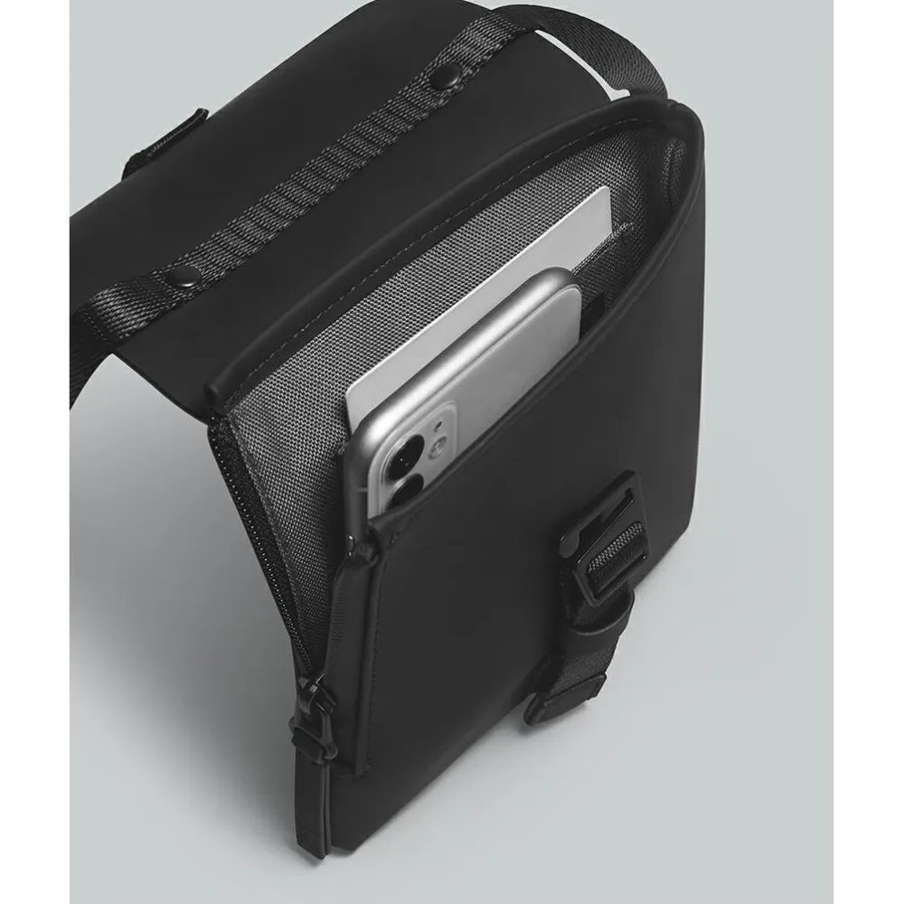 Die Spläsh Mini Crossbody von Gaston Luga ist eine handliche, robuste und elegante Umhängetasche für Streifzüge durch die Stadt und andere Kurzzeitabenteuer. Sie ist ideal für Tage, an denen du minimalistisch und leichtfüßig unterwegs sein möchtest. Ihr langlebiges Recyclingmaterial ist nicht nur ziemlich schick, sondern hält auch einem kräftigen Regenguss problemlos stand. Die Verschlussklappe gibt den Blick auf das mit recyceltem Oxford gefütterte Hauptfach frei. Zur weiteren Ausstattung der Spläsh Mini gehören das verstellbare Gurtband und die seitliche Reißverschlusstasche für den einfachen Zugriff auf das Handy und die Kreditkarte.
