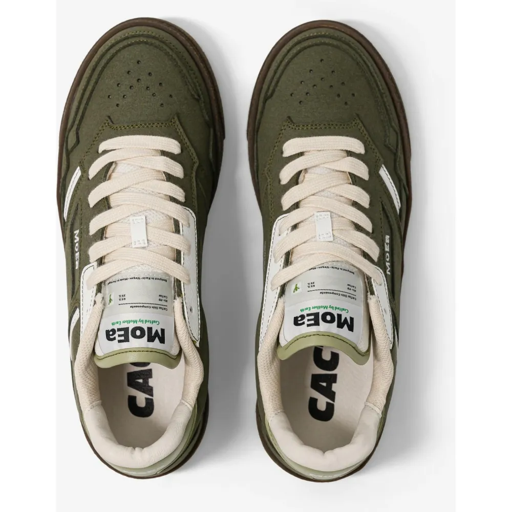 Der Gen9 Cactus Sneaker von MoEa bringt klassische Form und moderne Materialien zusammen. Das Obermaterial besteht zum Teil aus Fasern aus Kaktusblättern, die geerntet werden, ohne die Pflanze zu beschädigen, und wird mit bio-basiertem PU zu einem lederähnlichen Stoff verarbeitet. Das Ergebnis ist ein veganer Sneaker, der sich angenehm trägt und sich problemlos in Deinen Alltag integrieren lässt.