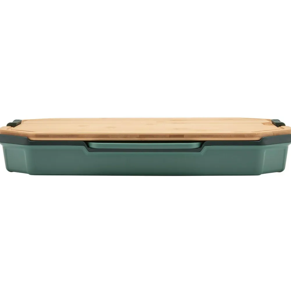 Nach dem Kochen kannst Du alle Komponenten sicher in den stabilen Innen‑ und Basistrays einnesten. Robuste Verriegelungen halten Messer und Bretter fest an ihrem Platz, sodass nichts lose in Deinem Gepäck liegt. Die Konstruktion ist auf häufige Nutzung ausgelegt, die Teile sind spülmaschinengeeignet und leicht zu reinigen. Mit kompakten Abmessungen passt das Set gut in Deine Ausrüstung und bleibt jederzeit übersichtlich organisiert.