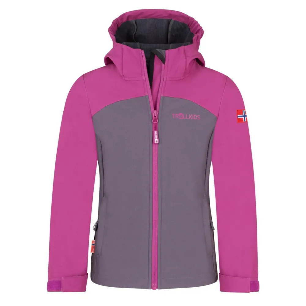 Die Jacke bietet kleinen Abenteurern ausreichend Bewegungsfreiraum für wildes Toben. Der durchgehende Front-Reißverschluss kann schnell und einfach geöffnet und geschlossen werden. Damit ist die Jacke individuell tragbar. Die Kapuze schützt den Kopf vor Wind und Wetter. Dank der verstellbaren Ärmelbündchen schmiegt sich die Jacke angenehm an die Handgelenke an. Eine Jacke, mit der kleine Abenteurer unbesorgt Spaß in der Natur haben können – Girl’s Kristiansand Jacket XT von Trollkids.
