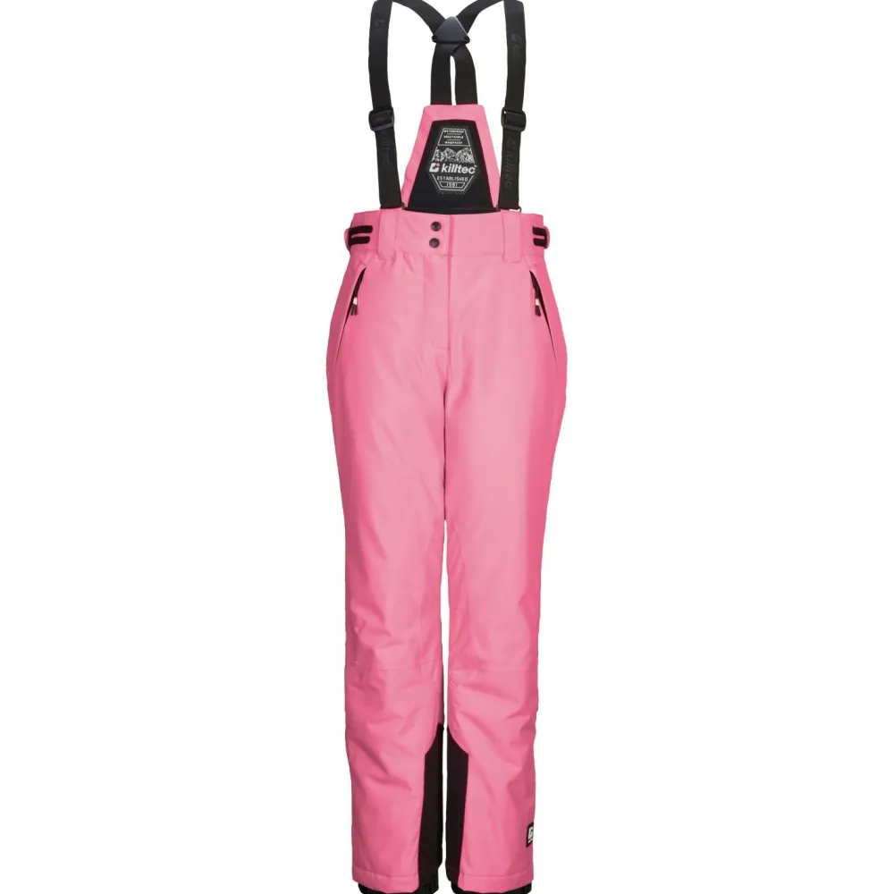 Dank der Hosenträger bleibt die Skihose an Ort und Stelle und hält selbst wilden Abfahrten stand. Die Hosenträger sind außerdem individuell verstellbar. Der Hüftbund kann individuell an die Hüfte angepasst werden. Damit schmiegt sich die Skihose angenehm an den kindlichen Körper an. Dank der beiden Seitentaschen mit Reißverschluss bietet die Skihose Platz, um wichtige Dinge schnell und sicher zu verstauen. Damit haben kleine Abenteurer die Hände frei. Der Doppeldruckknopf kann schnell und einfach geöffnet und geschlossen werden. Dadurch kann die Skihose auch von Kindern schnell und einfach an- und ausgezogen werden. Eine Skihose, die rundum überzeugt – die Girl’s KSW 213 Ski Pants von killtec.