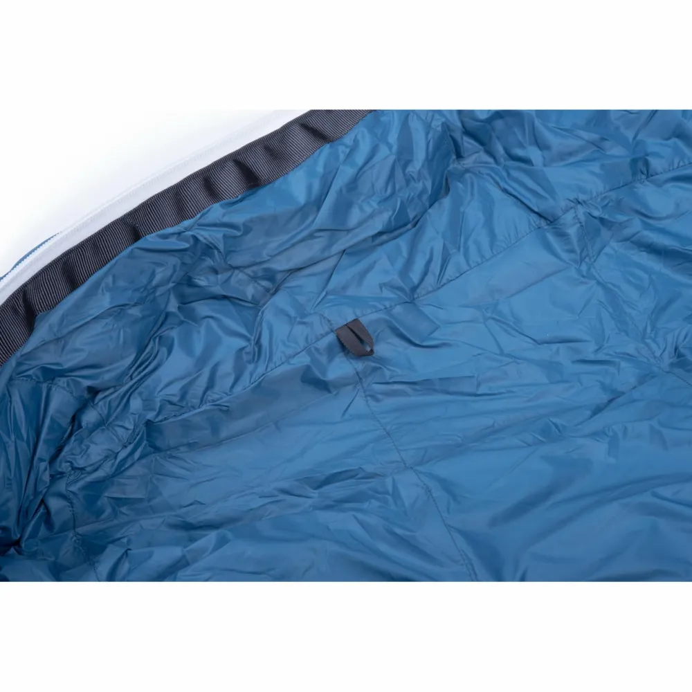 Die innovative Füllung DownWool, die aus 70% Entendaune und 30% veredelter Wolle besteht, verbindet die positiven Eigenschaften von Daune und Wolle. Dadurch weist der Schlafsack eine hohe Wärmeisolationsleistung auf und bringt durch den Wollanteil temperaturausgleichende und antibakterielle Eigenschaften mit sich. Ein weiterer Vorteil ist, dass man durch die Kombination der einzelnen Füllmaterial-Komponenten ein ideales Verhältnis von Isolation, trockenem Klima im Schlafsack und geringem Eigengewicht hat. Weitere Details sind der Wärmekragen, der sich geschmeidig um den Hals legt und dadurch verhindert, dass Wärme von Innen nach außen entweichen kann. Die mit einem Kordelzug einstellbare Kapuze mit Facebaffle passt sich der Kopfform an und hält beim Schlafen warm. Weitere Details des Schlafsacks sind das Kopfkissenfach, die Innentasche, die Außentasche und der Zwei-Wege-Reißverschluss. Außerdem kann der Biopod DownWool Ice mit Daunenwaschmittel im Wollprogramm bei maximal 30°C in der Waschmaschine gewaschen werden.