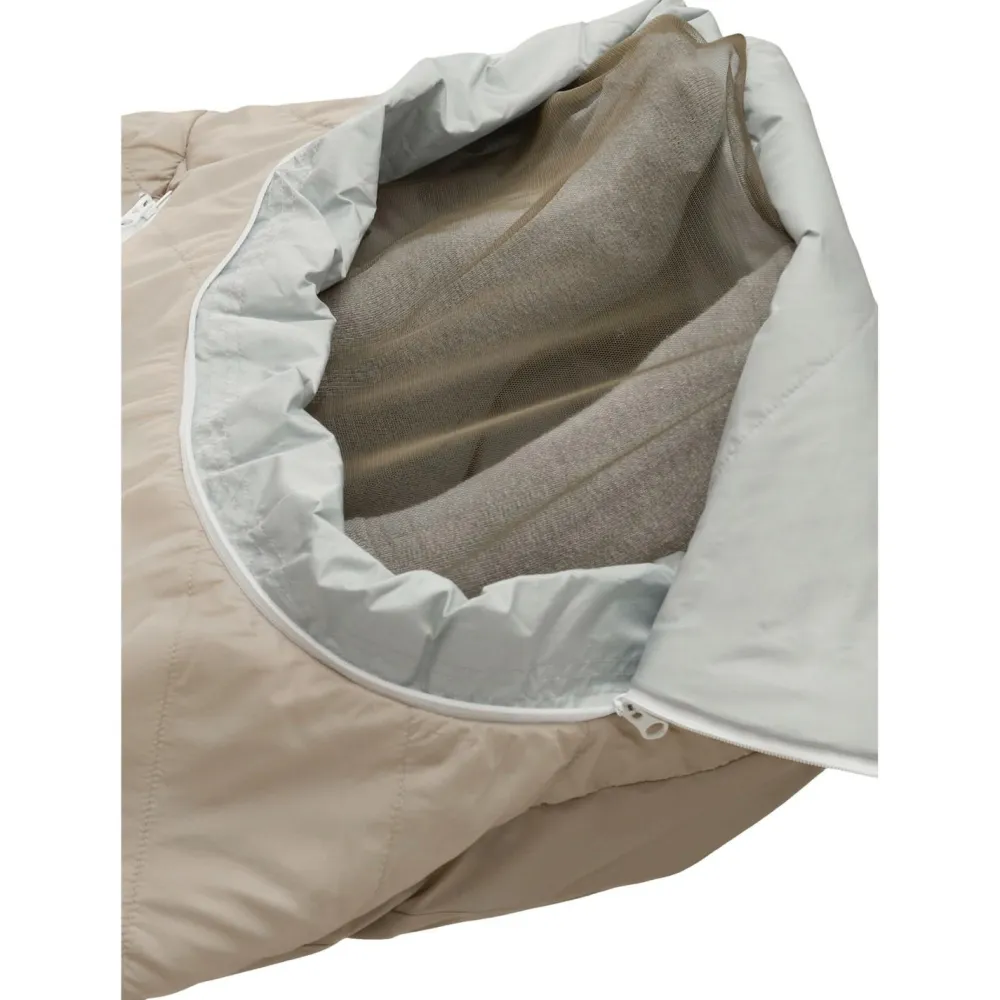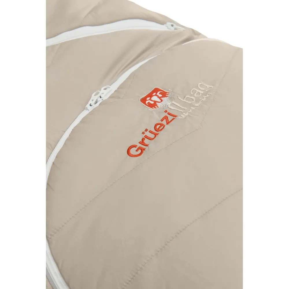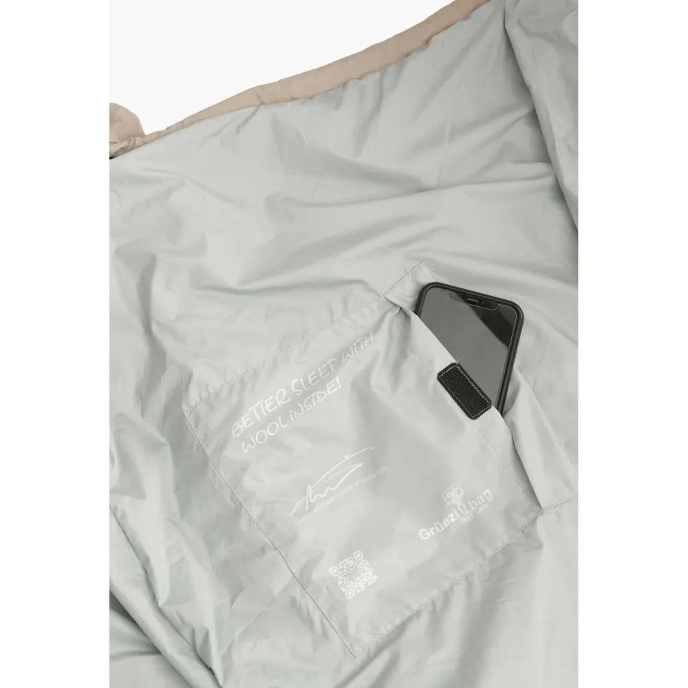Und gemäß der Spezialisierung von Grüezi bag wurde auch beim Isolationsmaterial nicht gespart: hier kommt eine Mischung aus 85% Schurwolle und 15% Polylactid (ein biobasierter Polyester, in dem Fall gewonnen aus Maisstärke) zum Einsatz. Diese Isolierung hält Dich nachts und auch bei feuchten Bedingungen warm, sorgt aber auch für ein gutes Temperatur- und Feuchtigkeitsmanagement.