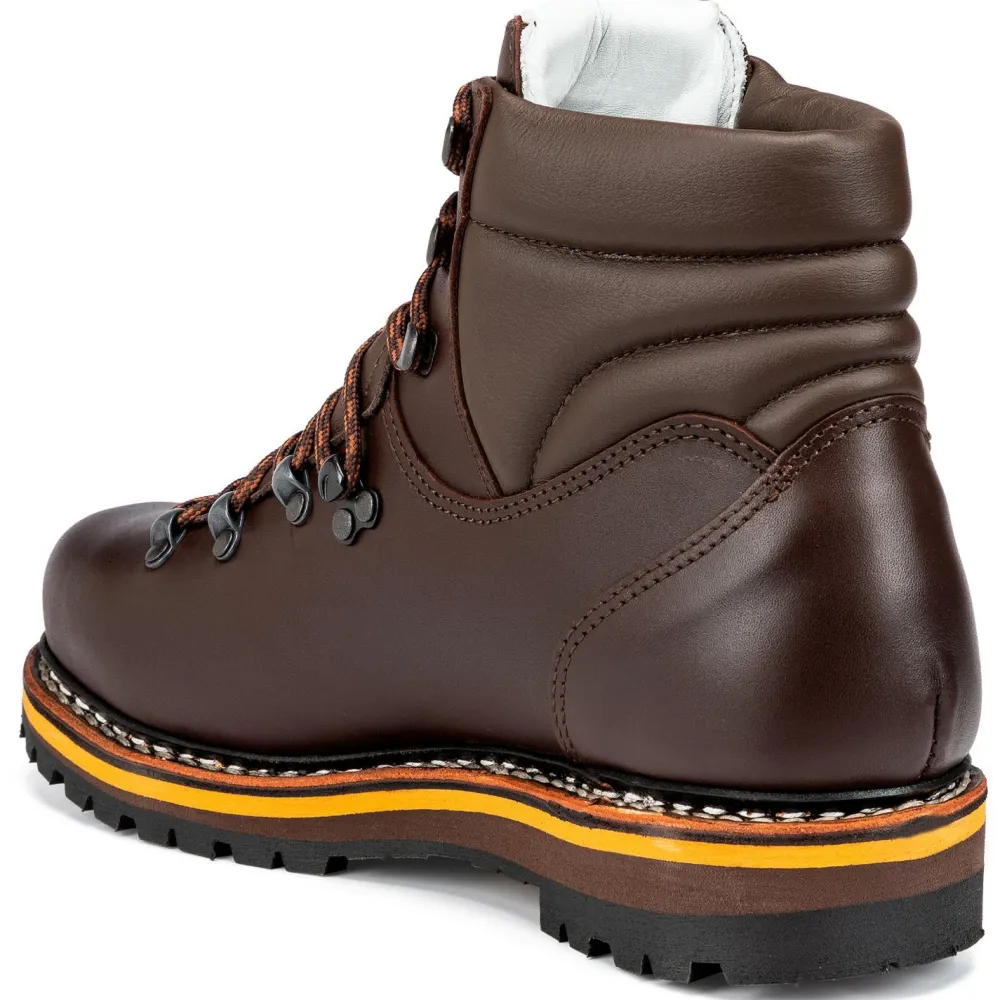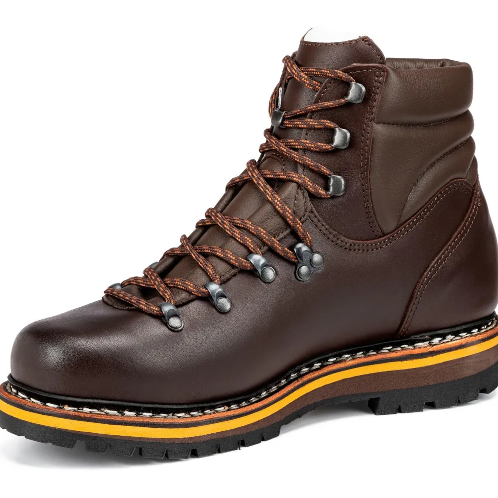 Der nach dem „Wächter des Allgäus“ benannte Grünten der bayerischen Bergschuh-Spezialisten von Hanwag folgt strikt dem Prinzip what you see is what you get: er sieht aus wie ein klassischer Bergstiefel, und genau das ist er auch – unter anderem! Denn er ist darüber hinaus auch unbedingt alltagstauglich, da vergleichsweise leicht, und richtig bequem. Klassisch zwiegenäht in Hohentengen, bietet der halbhohe Schuh gute Bewegungsfreiheit, optimalen Knöchelschutz und einen wunderbar weichen Schaftabschluss. Die Vibram Guffert-Sohle sorgt für guten Grip in jedem Terrain und unter allen Bedingungen. Und sollte sie abgelaufen sein, ist der Grünten natürlich wiederbesohlbar. Klasse!