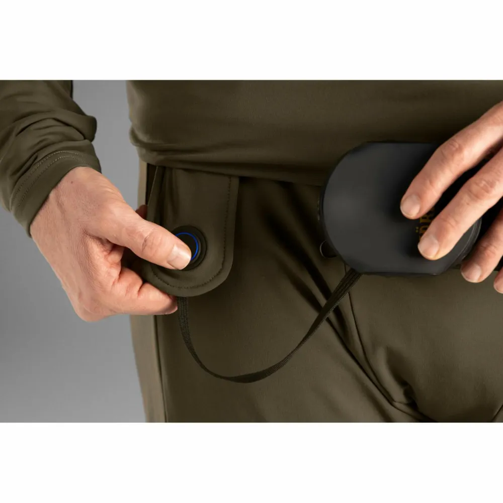 Die Härkila Heizunterhose wärmt aktiv im Lendenbereich und an den Knie. Sie verfügt über ein Textilkabel mit USB-Anschluss, der an einer Powerbank angeschlossen wird. Bei einer Powerbank mit 10000 mAh Leistung wärmt die Unterhose auf höchster Stufe bis zu 7h bei Außentemperaturen um den Gefrierpunkt. Per Knopfdruck kann die Wärmeleistung auf 35°C, 43°C oder 50°C eingestellt werden.