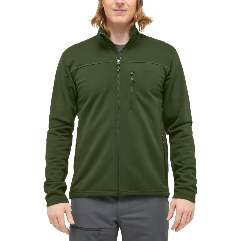 Mit der Rosson Mid Jacket von Haglöfs erhältst Du eine klassische Fleecejacke, die für die unterschiedlichsten Outdooraktivitäten gut geeignet ist. Normalerweise trägst Du diese Fleecejacke als mittlere Kleidungsschicht, gerade aber in der warmen Jahreszeit, kann die Jacke aber auch als oberste Kleidungsschicht punkten. Das Material ist dabei nicht nur angenehm weich, sondern auch atmungsaktiv und schnelltrocknend. Durch den überwiegend geraden Schnitt wirkt die Jacke nicht einengend und ermöglicht Dir bei den unterschiedlichsten Disziplinen eine gute Bewegungsfreiheit. Praktisch: In drei Taschen kannst Du allerlei Kleinteile schnell verstauen.