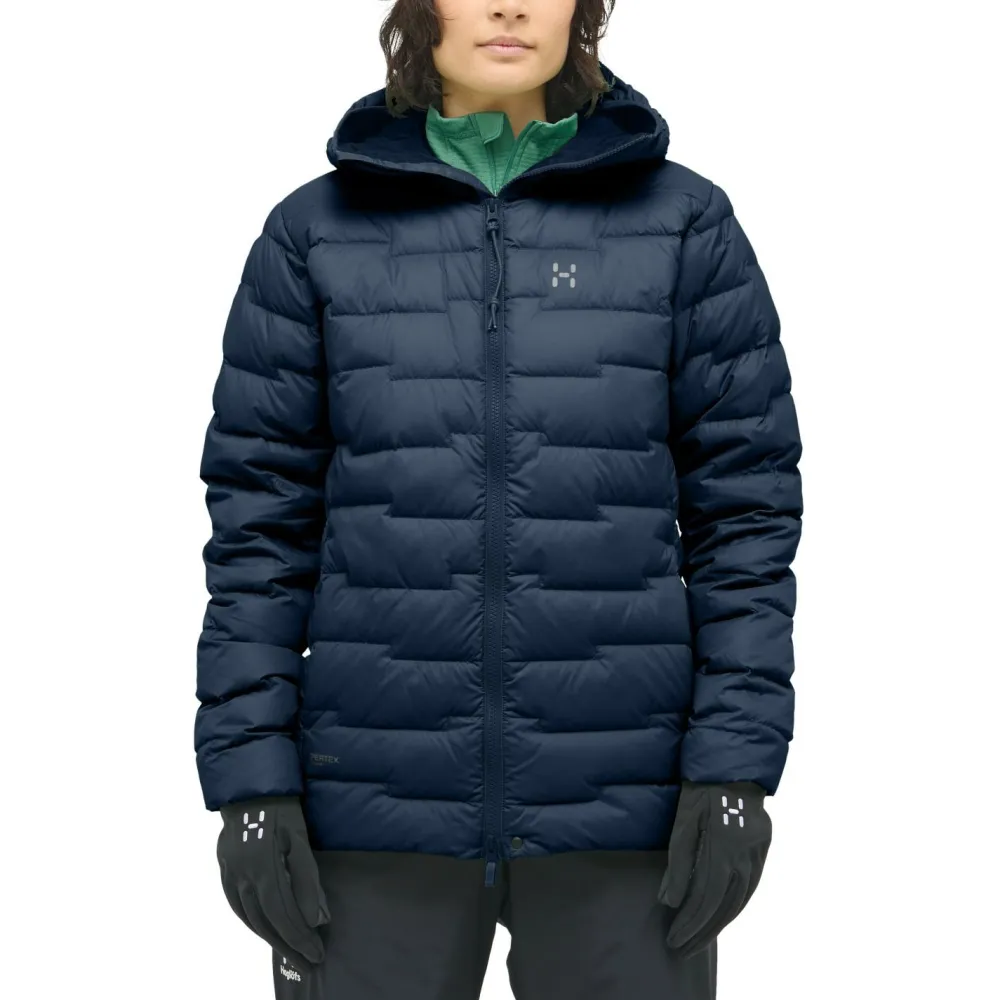 Wenns in den Bergen hoch hinaus geht, ist die Women’s ROC Flash Down Hood von Haglöfs Dein zuverlässiger Partner. Diese Daunenjacke begleitet Dich auf Hoch- und Skitouren, kann aber auch beim Trekking punkten. Das Außenmaterial ist dabei wasserabweisend und atmungsaktiv zugleich. Hierdurch ist auch leichter Niederschlag kein Problem und im Inneren entstehende Feuchtigkeit wird zielgerichtet abtransportiert. Im Inneren sorgt die hochwertige Daune außerdem für einen guten Wärmerückhalt.