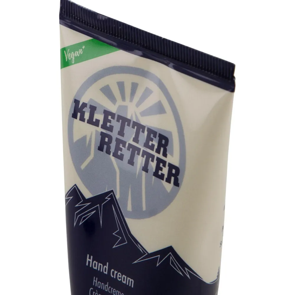 Zieht schnell ein und pflegt mit hochwertigen Inhaltsstoffen – die Handcreme von KletterRetter! Die Creme enthält Ringelblumenöl, welches für seine entzündungshemmende Wirkung bekannt ist. Zusammen mit Panthenol (Vitamin B5) wird so die Heilung von Wunden beschleunigt und die Haut erholt sich leichter von starken Belastungen. Außerdem spendet die Creme viel Feuchtigkeit für ausgetrocknete Haut – die beste Pflege für geschundene Kletterer-Hände!