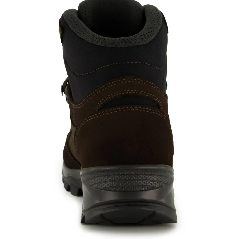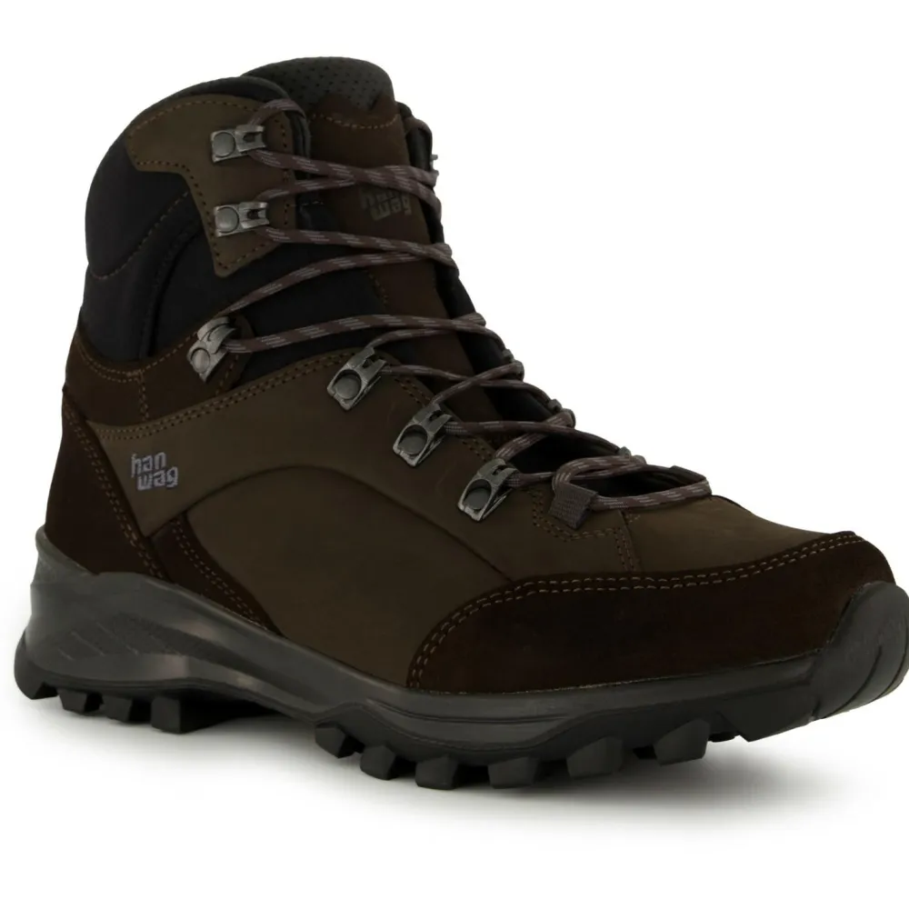 Lange Touren in gemäßigtem Gelände sind das Haupteinsatzgebiet der Banks LL von Hanwag. Bei diesen Wanderschuhen handelt es sich um die Neuauflage eines echten Klassikers, kein Wunder also, dass sie von Flachland bis Mittelgebirge durch ihre gute Performance überzeugen.Die Sohle verfügt dabei über eine breite Auftrittsfläche und bietet eine optimierte Stabilität sowie einen erhöhten Gehkomfort bei langen Wanderungen. Durch die Abrundung der Sohle und die runden Profilstollen in der Mitte können sich kleine Steine und schlamm und Dreck hier nur schlecht festsetzen.Freunden der Lederschuhe wird hier sicherlich das Herz aufgehen, denn bei diesem Modell handelt es sich um einen Vollnubuklederschuh. Durch die Fertigung mit innen liegenden Nähten sind sie besonders robust und kommen auch mit raueren Bedingungen gut klar.