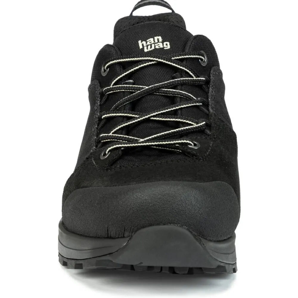 Mit dem Klarsby Low Bunion GTX von den bayerischen Wanderschuh-Spezialisten von Hanwag bist Du bestens ausgestattet – vor allem, wenn Deine Füße im Vorderfußbereich etwas mehr Platz benötigen oder Du sogar eine Fehlstellung der Großzehe (Hallux Valgus) hast. Und genau in dem Fall sind die Modelle der „Bunion“-Reihe von Hanwag wirklich perfekt. Denn die Zehenbox ist etwas breiter gestaltet und bietet daher mehr Platz und größeren Komfort. Im Zuge dessen wurde auch die Sohle der Schuhe angepasst und verfügt über eine verbreiterte Auftrittsfläche sowie eine PU-Zwischensohle mit hervorragender Dämpfung. Durch die Verwendung einer bewährten GORE-TEX-Membran ist das Obermaterial wasser- und winddicht und sorgt so für optimalen Wetterschutz und besten Wanderspaß bei allen Bedingungen!