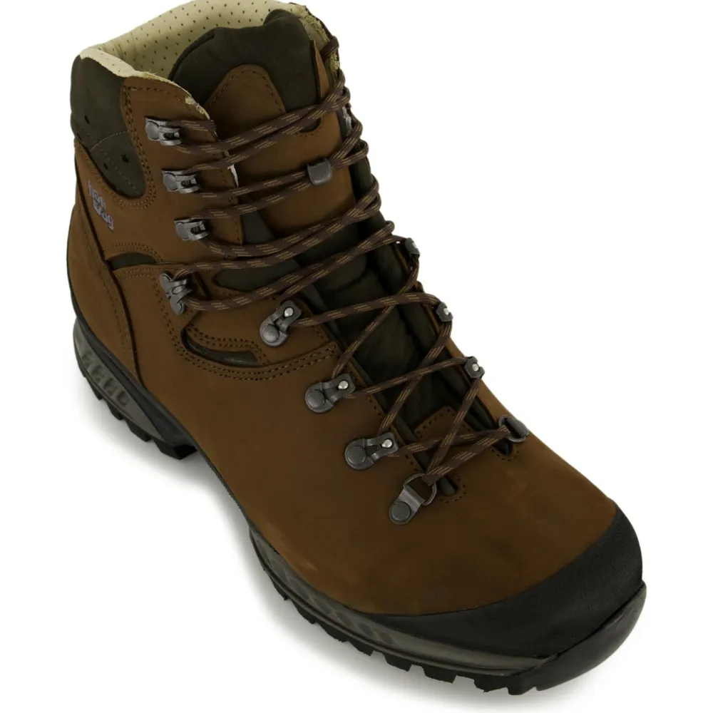 Tragekomfort setzt eine perfekte Passform voraus: Diese wird erreicht durch die bewährten Leisten von Hanwag, die Zwei-Zonenschnürung mit Click Clamps und die Zungenhaken, die das Verrutschen der Zunge verhindern.