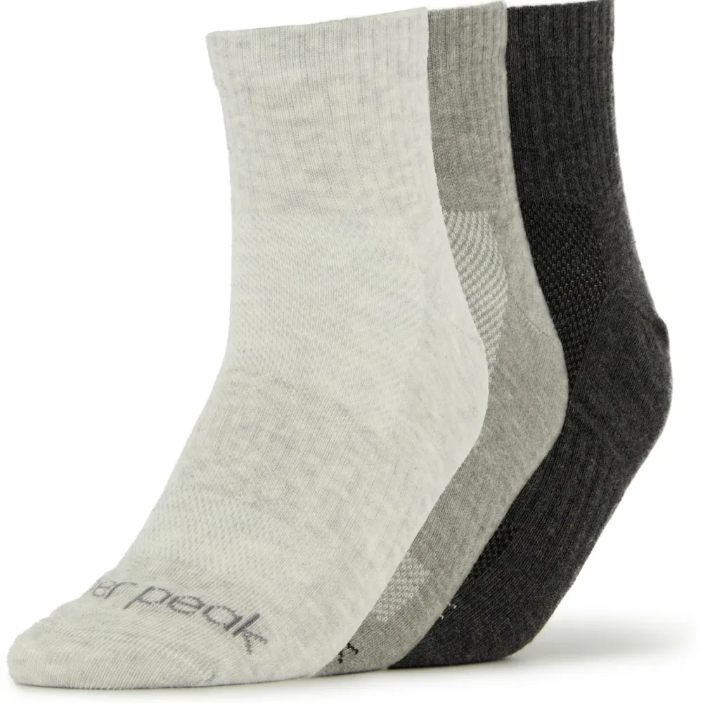 Die SylvaHe. Quarter 3 Pack von Heber Peak sorgen mit ihrem Mix aus weicher Baumwolle und funktionaler Kunstfaser für einen angenehmen Tragekomfort. Dank der Rippbündchen sitzen sie perfekt und sehen zudem noch ziemlich stylisch aus. Sie kommen direkt im dreier Pack, welcher verschiedene Farben enthält. So hast Du zu jedem Outfit die passenden Socken!