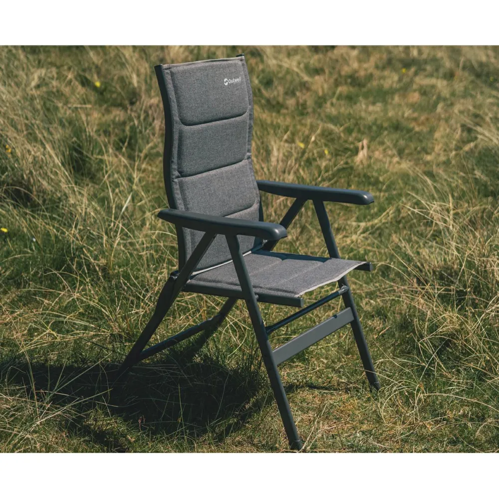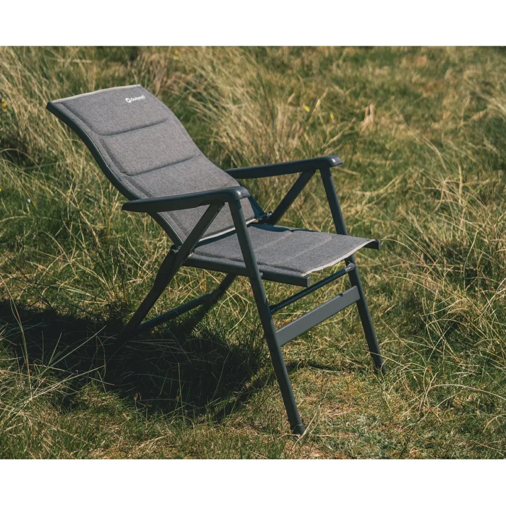 Der Campingstuhl Helena von Outwell lässt sich in 7 Positionen einstellen und ist mit einer hohen Rückenlehne ausgestattet. Der Bezug ist mehrlagig aufgebaut und besteht aus lösungsgefärbtem, gebürstetem Polyester mit Schaumzwischenlage. Ein pulverbeschichteter Aluminiumrahmen sorgt für Stabilität bei geringem Gewicht. Du kannst den Stuhl schnell auf- und zusammenklappen, er kommt ohne Montage aus und lässt sich platzsparend transportieren.