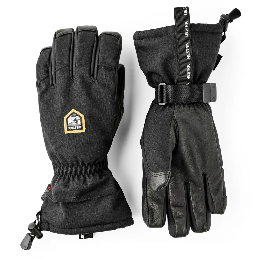 Die Handschuhe CZone Mountain 5 Finger von Hestra sind komfortable Partner für den Wintersport! Das Obermaterial aus Kunstfaser und Leder ist widerstandsfähig und robust. Die synthetische Füllung bietet dazu einen warmen Tragekomfort, auch unter feuchten Bedingungen. Das elastische Bündchen mit Klettverschluss optimiert die Passform. Ein Allrounder für die kalten Tage auf der Piste!