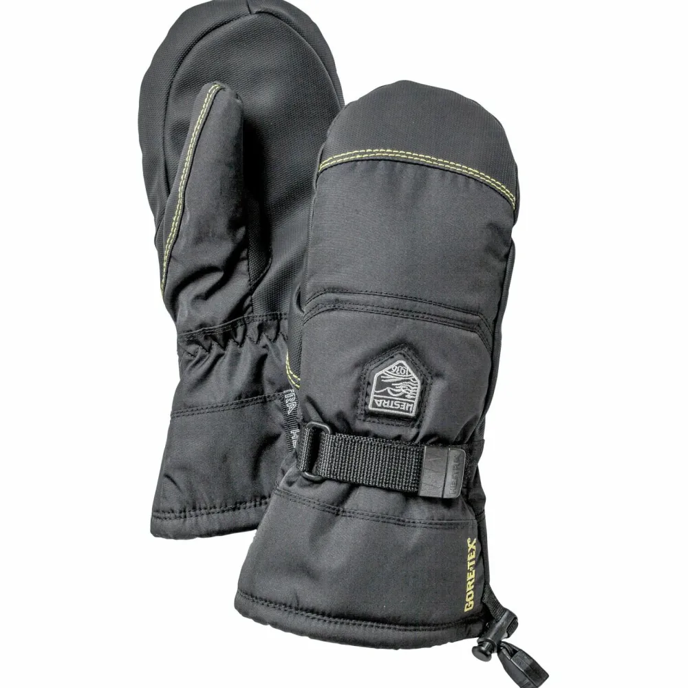 Der GORE-TEX Gauntlet Junior Mitt ist ein wahren Alleskönner von Hestra. Dank ihm bleiben Kinderhände selbst bei kalten und nassen Bedingungen schön warm und trocken und deswegen ist er immer eine Empfehlung wert. Das Obermaterial ist ein atmungsaktives, wind- und wasserdichtes Polyester. Eine GORE-TEX Membran stellt sicher, dass die Hände immer gut geschützt sind und transportiert unnötige Feuchtigkeit zügig ab. Als Isolation wird Fiberfill benutzt, eine leichte Polyesterfaser mit hervorragenden Isolationseigenschaften. Die gebürstete Innenseite sorgt für ein angenehmes Griffgefühl und ein Schneefang, sowie ein Riemen mit Klettverschluss halten Schnee draußen und Wärme drinnen. Hestras Wolfpaw Technologie rundet die durchdachte Ausstattung des GORE-TEX Gauntlet Junior Mitt ab. Die Nähte der verstärkten Fingerkuppen werden dabei nach innen verlegt um keine Angriffsfläche für Abrieb zu bieten. Warm, trocken und robust. Ein wahrer Alleskönner eben.