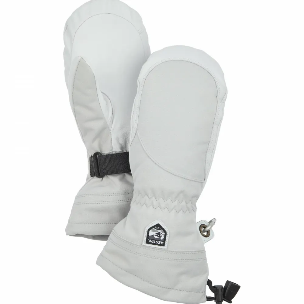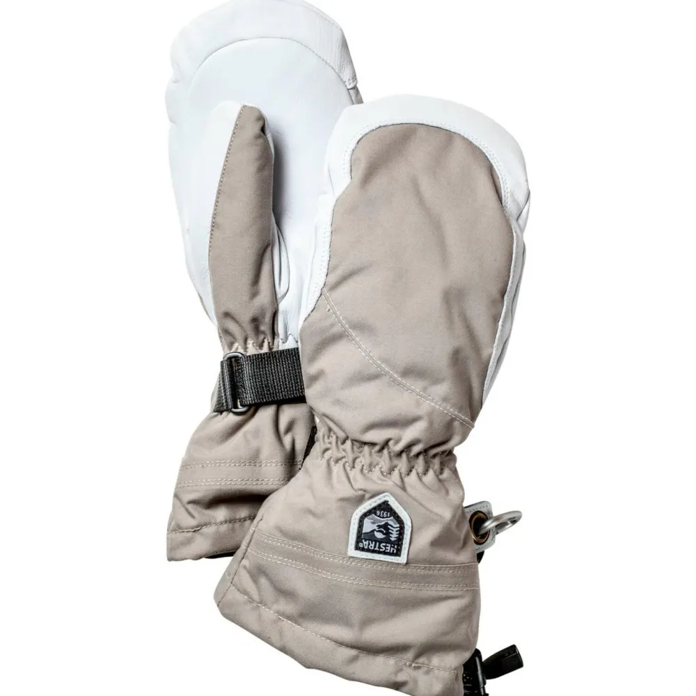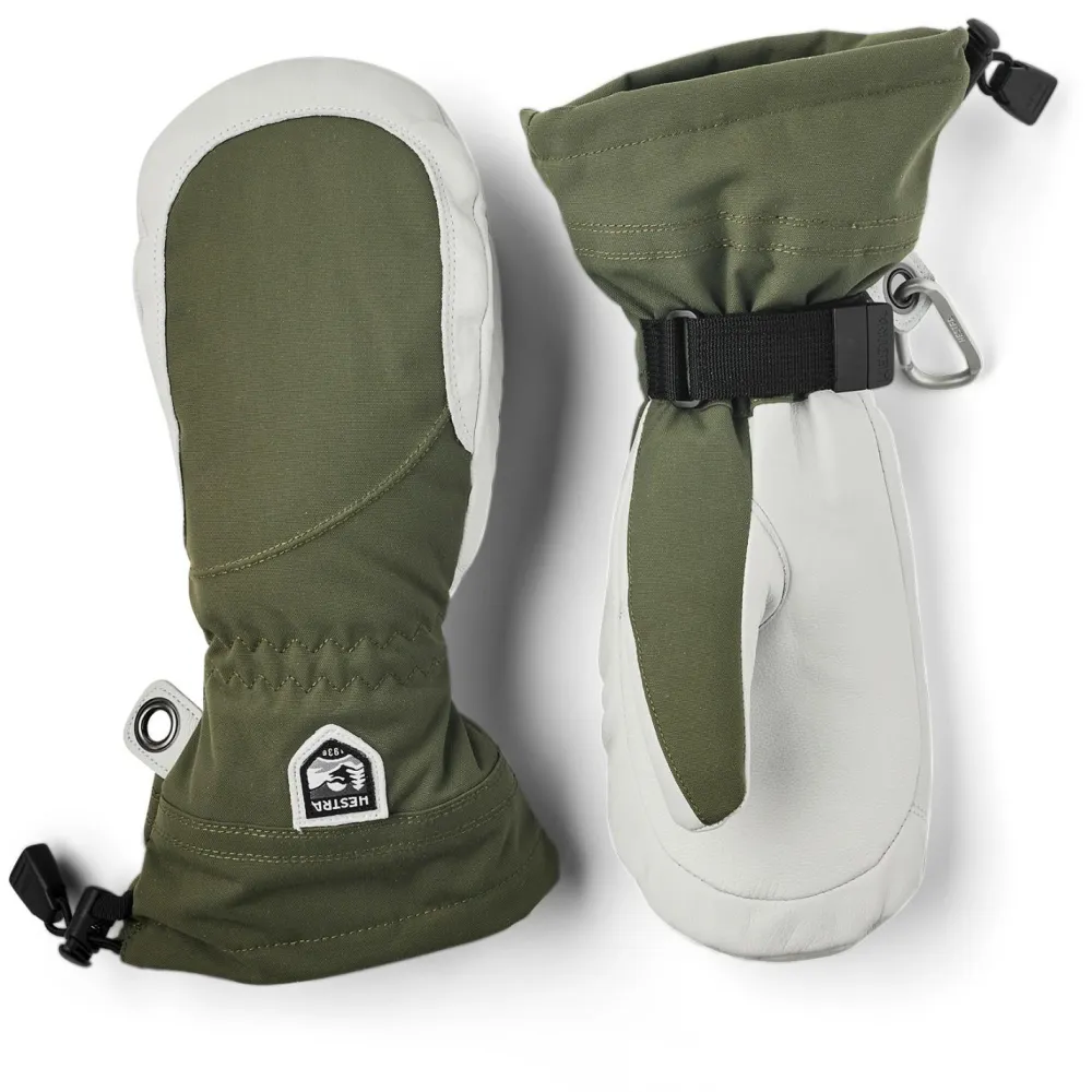 Wintersportlerinnen mit einem hohen qualitativen Anspruch und großer Wertschätzung für den Komfort eines Fäustlings, sollten sich mal unbedingt die Damen-Handschuhe Women’s Heli Ski Mitt von Hestra anschauen. Diese Handschuhe sind zuverlässige, warme und funktionelle Begleiter auf der Piste und im Tiefschnee, auf Skiern und auf dem Board.Die Rückhand besteht aus winddichtem, wasserabweisendem, atmungsaktivem und robustem Triton-Polyamid. An der Innenhand ist Army-Ziegenleder verarbeitet, ein besonders robustes, imprägniertes und stark wasserabweisendes Leder, das bei richtiger Pflege über Jahre erhalten bleibt. Die herausnehmbaren Innenhandschuhe bestehen aus G-Loft, einer synthetischen, atmungsaktiven Isolation mit hoher Wärmeleistung und angenehmem Tragegefühl. Die Handgelenksklettverschlüsse, die breiten Bünde und die Kordelzüge erzeugen einen hervorragenden Übergang zu den Ärmeln, so dass die warme Luft an den Händen bleibt und kein Schnee in die Handschuhe eindringt. Auch praktisch sind die elastischen Sicherheitsschlaufen, welche die Außenhandschuhe am Handgelenk fixieren und der Karabiner, mit welchem das Handschuhpaar schnell und einfach am Gürtel, Rucksack oder ähnlichem befestigt werden kann.Die hochwertigen Women’s Heli Ski Mitt Fäustlinge haben das Potential zu langjährigen Lieblingen in der Ausrüstungskiste zu mutieren.