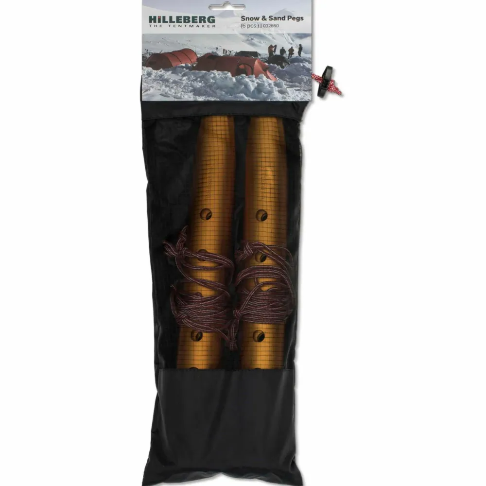 Der Snow & Sand Peg von Hilleberg ist aus robustem Aluminium hergestellt und eignet sich hervorragend für das Abspannen von Zelten in Schnee und Sand. Die mittig angebrachte Leine mit Haken bietet die Möglichkeit den Hering nicht nur wie gewöhnlich einzuschlagen. Mit ihr ist es auch möglich den Hering quer zum Zelt einzugraben. Die Abspannleinen werden in diesem Fall am Haken der Leine befestigt.