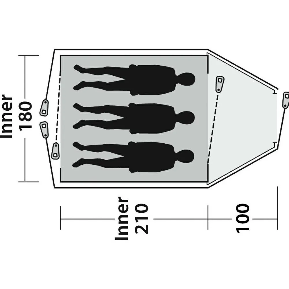 Das Zelt bietet mit seinen Maßen ausreichend Platz für bis zu drei Personen. Ein Eingang und eine Apside ermöglichen eine praktische Nutzung des Innenraums, sodass Du und Deine Freunde bequem untergebracht seid. Diese Raumaufteilung ist ideal für Gruppen oder Familien, die gemeinsam campen und dabei nicht auf Komfort verzichten wollen.
