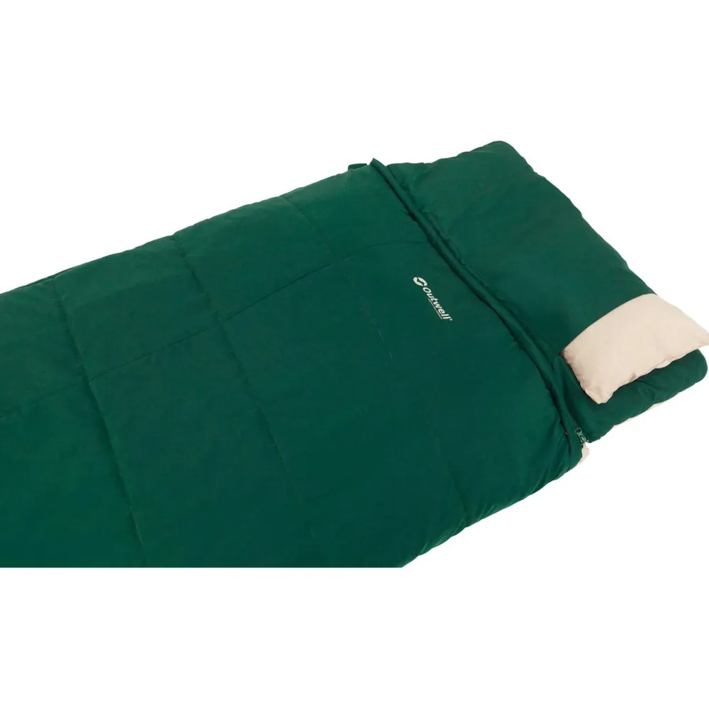 Ein integriertes Kissen erhöht den Liegekomfort, ohne dass Du zusätzlich etwas einpacken musst. Der L-förmige Reißverschluss lässt sich leicht bedienen und erlaubt es, den Schlafsack vollständig zu einer Decke zu öffnen. Eine durchgehende Abdeckleiste reduziert Wärmeverlust und Befestigungsschlaufen im Fußbereich fixieren ein optionales Inlett. Für gemeinsam Reisende lassen sich zwei Modelle miteinander koppeln. Im Kompressionssack wird der Schlafsack kompakt verstaut und ist schnell wieder zur Hand.