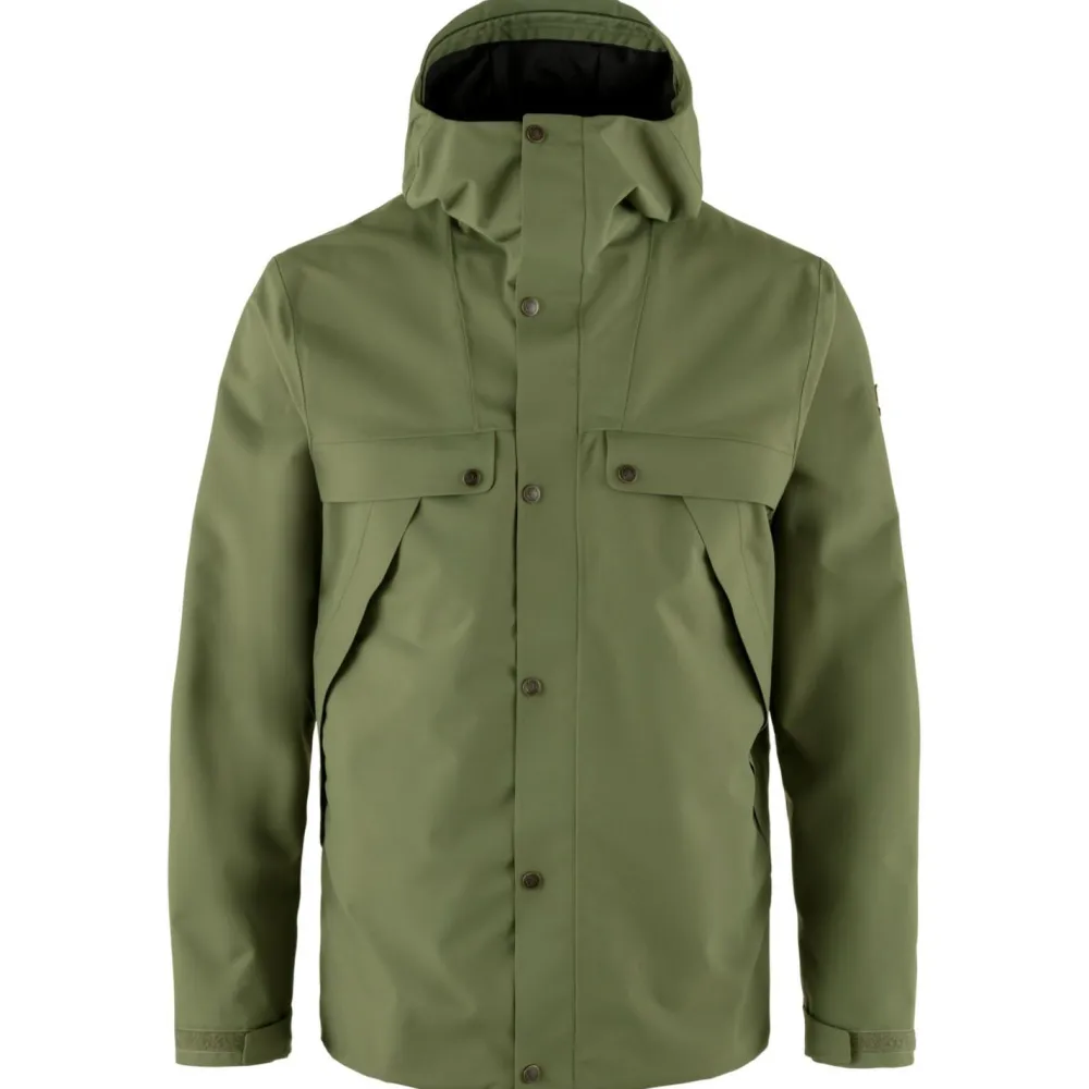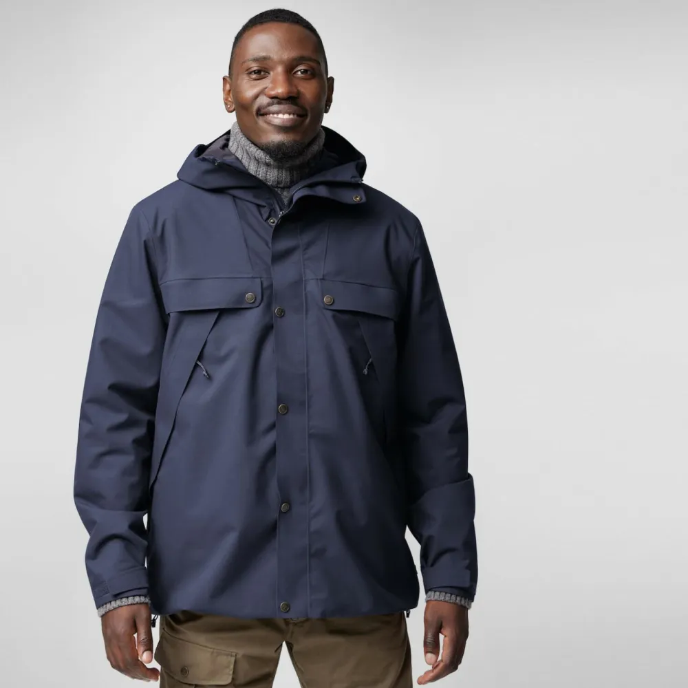 Die Övik Hydratic Jacket von Fjällräven ist eine funktionale 2-Lagen-Shelljacke für Herren, die sich sowohl im urbanen Alltag als auch bei Outdoor-Aktivitäten bewährt. Gefertigt aus recyceltem Polyester mit einer Hydratic PU-Membran, bietet sie zuverlässigen Schutz vor Wind und Regen. Mit einer Wassersäule von 10.000 mm und einer Atmungsaktivität von 10.000 g/m²/24h hält sie Dich angenehm trocken – egal ob beim Spaziergang durch die Stadt oder beim Wandern durch die Natur.