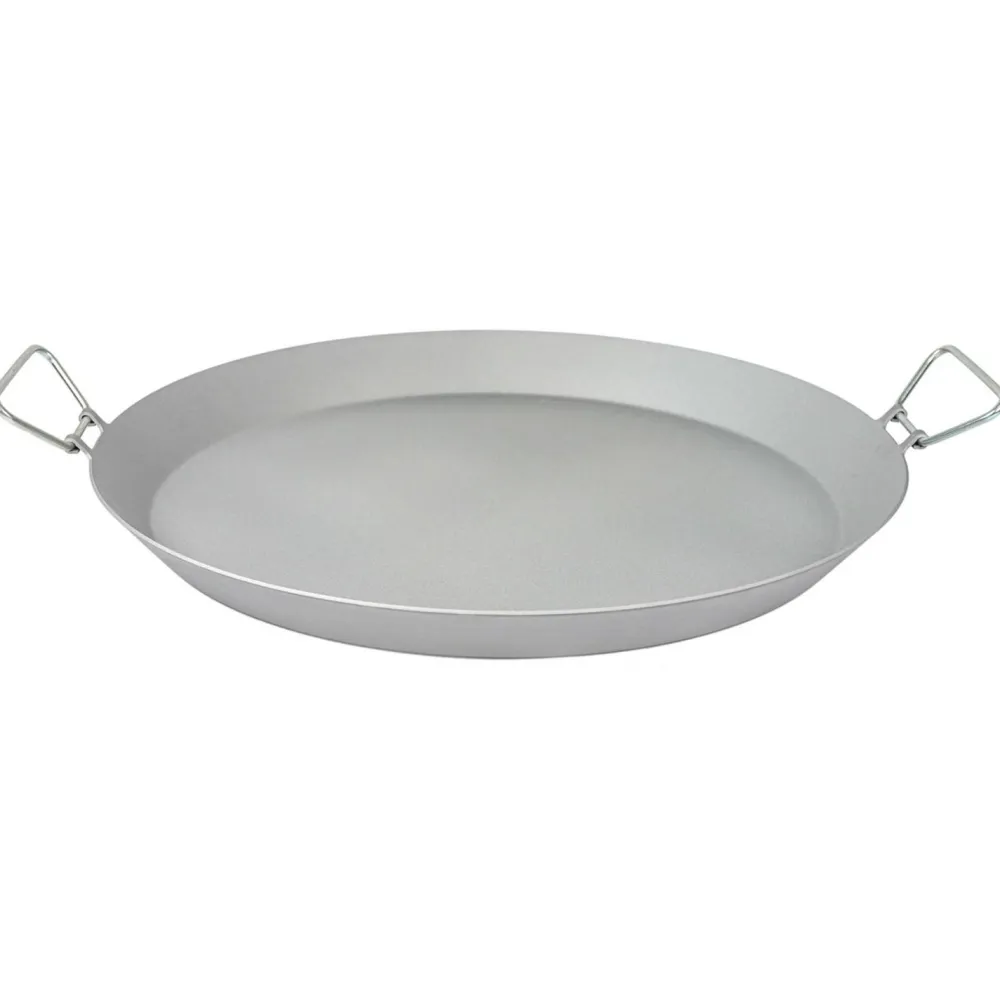 Die Forest Pan von Stabilotherm setzt auf massiven Karbonstahl – ein Material, das in der Outdoor-Küche vor allem durch seine Stabilität und gute Hitzeleistung überzeugt. Mit ihrem Durchmesser von etwa 46 cm ist die Pfanne ideal geeignet, wenn Du für mehrere Personen kochen willst. Die hohen Ränder geben Dir zusätzlichen Spielraum für Gerichte wie Risotto, Pfannengerichte oder Eintöpfe, ohne dass etwas überläuft. Durch die zwei klappbaren Griffe lässt sich die Pfanne trotz ihres Gewichts angenehm handhaben und platzsparend verstauen. Das macht sie im Lagerfeuer-Setup oder beim Kochen am offenen Feuer besonders praktisch.